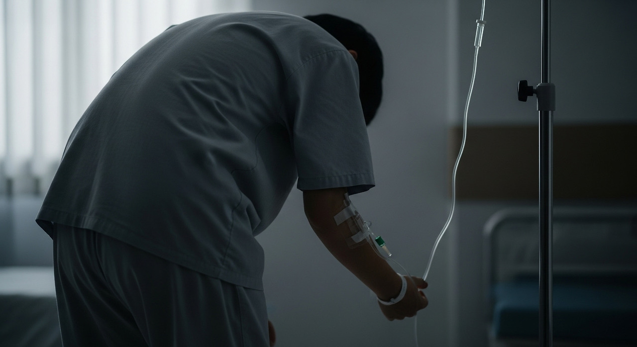 양팔엔 여러 개의 주사선이 주렁주렁 달려있었고,