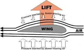 양력이 발생하는 원리는 공기의 흐름에 따른 기압차를 이용하는 것이다. 이는 베르누이 효과라고도 한다. 간단히 설명하면 항공기 날개가 공기를 가르는데 항공기의 날개는 윗면이 곡선으로 되어 있어서 아랫면보다 더 넓다. 날개 시작점에서 2의 공기가 위아래로 1씩 나뉘어 지나가서 날개 끝에서 동시에 만난다고 하면, 날개 위의 공기는 더 넓은 면적을 지나가야 하기 때문에 더 빠른 속도로 이동하게 된다. 이렇게 빠른 속도가 계속 유지되면 날개 위는 날개 아래보다 압력이 낮아지면서 날개 아래서 위로 상승하는 힘을 받게 되는데 이게 바로 양력이다. 태풍의 눈 주위로 공기가 빠르게 순환될 때 태풍 중심부 기압이 낮은 것과 같은 이치라 할 수 있다.