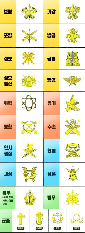 장교를 비롯한 모든 군 간부들은 명찰 위에 본인의 병과 마크를 부착하도록 되어있다. 이 마크만 보고도 이 사람의 병과가 어느 것이구나 하고 단번에 인지할 수 있다. 하지만 장군이 되면 이런 병과를 초월하여 군을 이끌어 갈 수 있는 능력이 검증돼서 병과에 구애받지 않게 되고 더 이상 군복에 병과 마크를 부착하지 않게 된다. 그렇다고 경리를 담당하던 장교가 장군이 되었다고 보병을 지휘하는 지휘관으로 가거나 하지는 않는다. 어느 정도 운신의 폭은 늘어날 수는 있지만 본인의 출신을 완전히 배제하고 임의로 담당 부대나 임무가 정해지지 않는다는 말이다. 즉, 병과 선택이 군 생활에 얼마나 중요한 요소인지 말해주는 것이라고 할 수 있다.