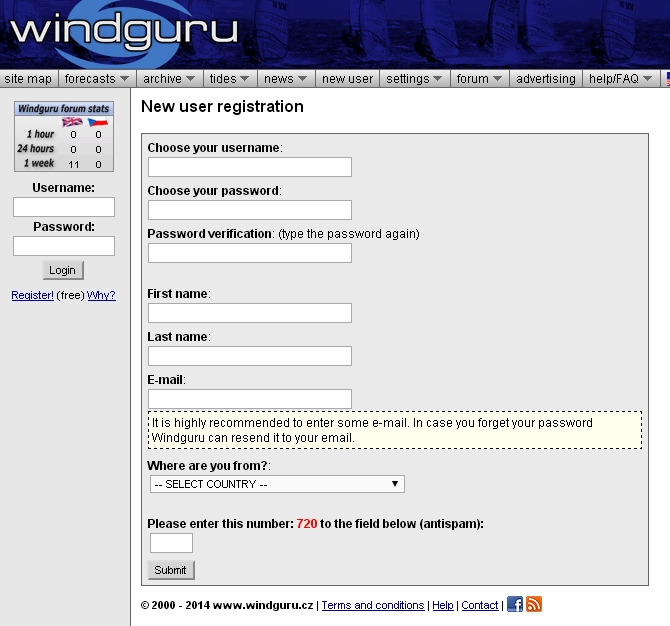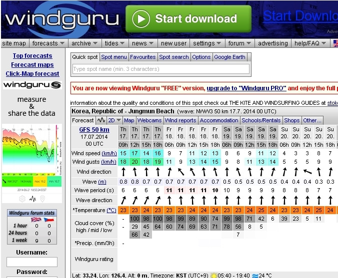 Http://www.windguru.cz 에 접속하여 좌측 하단의 간단한 회원가입 절차를 마치면 됩니다.