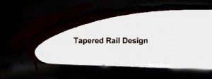 레일의 끝부분이 예각일수록 회전은 쉬어지게 됩니다. 서프보드는 보드 자체의 추진력이 아니라 파도가 만들어내는 파도의 면에서 떨어지면서 얻어지는 중력을 추진력으로 하기 때문에 보드가 물에 잠식되어지는 부분이 적어지게 되면 물에 대한 저항력이 그만큼 적어지게 되면 회전하는 것이 용이하게 됩니다. 그래서 빠른 회전과 동작을 필요로 하는 숏 보드에 많이 사용되고 있는 레일 형태입니다.