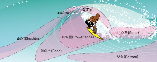 파워 존(POWER ZONE).•서핑 중에 있는 라이딩 속도를 낼 수 있는 장소