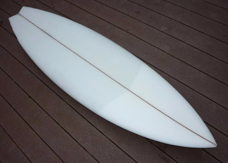 서프보드의 바닥면. 핀 세팅이나 콘케이브 채널 등 물의 흐름을 계산해 설계된 보드의 아랫면.