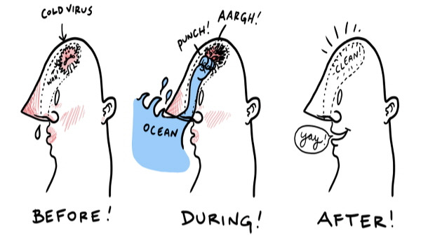 때문에 오히려 서핑 활동을 통해 콧속과 부비동을 깨끗하게 세척할 수 있는 좋은 기회입니다.