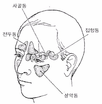 부비동이란 얼굴뼈 속에 공기로 채워진 빈 공간을 말하며 부위에 따라 사골동, 상악동, 전두동 접형동으로