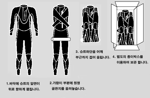 은 슈트의 수명에도 크게 영향을 미치게 되므로. 여기에서는 슈트를 세척, 건조, 보관하는 방법을 소개 하게