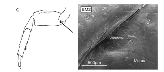 갑각류는 소리를 감지하는 세 가지 주요 감각 기관을 지니고 있습니다. 바로 평형기관(statocyst), 피부 표면의 감각털(superficial hair cells), 그리고 현향기관(chordotonal organs)입니다. 이들 기관은 모두 수중에서 발생하는 압력 변화보다는, 200 헤르츠 이하의 저주파수 입자 운동에 더욱 민감하게 반응하는 것으로 알려져 있습니다. 대부분의 갑각류는 평형기관을 가지고 있으며, 이는 주로 균형 유지에 관여하지만, 수압 변화나 물의 흐름에도 반응합니다. 이것은 마치 어류의 이석처럼 질량을 지닌 감각 구조로 작용하여, 움직임에 따라 감각세포를 자극하고 신경 신호를 발생시킵니다. 감각 털은 갑각류의 몸 표면이나 다리 등에 광범위하게 분포하며, 크기는 보통 200~2,000마이크로미터 사이입니다. 연구에 따르면, 이 털들이 얼마나 민감하게 반응하는지는 털의 굵기와 그 위를 흐르는 물살의 속도에 밀접하게 연관되어 있습니다. 일반적으로 털이 굵을수록 천천히 흐르는 물에서도 저주파수의 입자 운동에 잘 반응하는 경향이 있습니다. 세 번째 기관인 현향 기관은 주로 다리나 더듬이처럼 관절이 있는 부위에 위치하며, 대부분의 갑각류에서 발견됩니다. 이 기관 내부에는 양극성 감각 뉴런이 존재하는데, 이들은 세포체에서 두 개의 돌기, 즉 축삭(axon)과 수상돌기(dendrite)가 서로 반대 방향으로 뻗어 있는 구조입니다. 이 뉴런들은 주로 외부 자극에 대한 감각 정보를 받아들여 중추신경계로 전달하는 역할을 하죠. 현향기관은 관절의 위치, 움직임, 장력 변화뿐 아니라, 주변 물의 입자 움직임에도 민감하게 반응합니다. 이러한 정밀한 감각 체계는 근육이나 인대 조직과 연결되어 있어, 외부 환경 변화에 대한 섬세한 정보를 실시간으로 전달할 수 있게 해줍니다.
