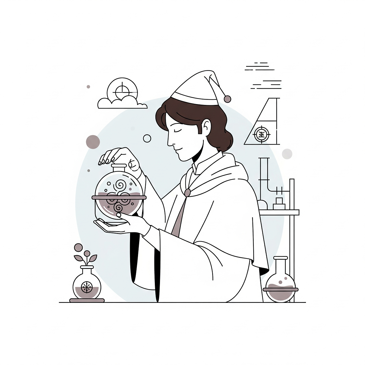 연금술 혹은 연금술사라는 단어를 들으면 어떤 이미지가 떠오르시나요? 어두운 지하실, 햇빛 한 줄기 스며들지 않는 공간에서 검은 망토를 입은 이가 낡은 책을 펼치고, 증기로 가득한 플라스크 사이에서 약물을 섞고, 실험을 반복하는 모습이 떠오를지 모르겠네요. 이는 수많은 영화와 이야기에서 반복된 클리셰이기도 합니다. 혹은 파울로 코엘료의 소설 <연금술사>에 나오는 인물들처럼, 진리를 찾아 세상을 방황하는 현자들을 떠올릴 수도 있습니다. 이들은 단순히 물질을 변환하는 것을 넘어, 자아를 발견하고 우주의 비밀을 탐구하는 더 큰 여정을 상징한다는 점에서 많은 이들의 로망이 됩니다.