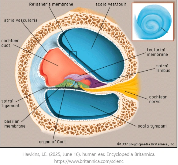 하지만, 아무리 정교하게 설계된 기계라도 시간이 지나면 언젠가 고장이 나기 마련입니다. 노화로 인한 성능 저하일 수도 있고, 부품 자체의 결함 때문일 수도 있습니다. 앞서 살펴보았듯이, 달팽이관 안의 청각 기관은 수많은 구조가 정밀하게 조화를 이루며 작동합니다. 그만큼 손상 가능성이 있는 부위도 다양합니다. 하나하나 살펴보자면 책 한 권으로도 부족할 정도죠. 이번 장에서는 그중에서도 대표적인 몇 가지 핵심 부위를 중심으로 살펴보려 합니다.