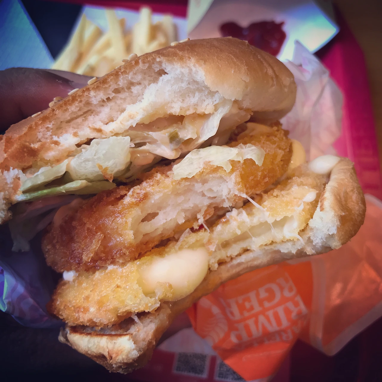 모짜렐라 치즈를 튀김옷 입혀 튀긴건데.. 왜 새우패티 밑에 넣었는지.. 혀가 치즈에 먼저 닿으니 새우패티의 고소함을 전혀 느낄수 없고, 치즈와 튀김옷의 느끼함만 남음.. 역시 오리니날 새우버거를 넘을순 없다.