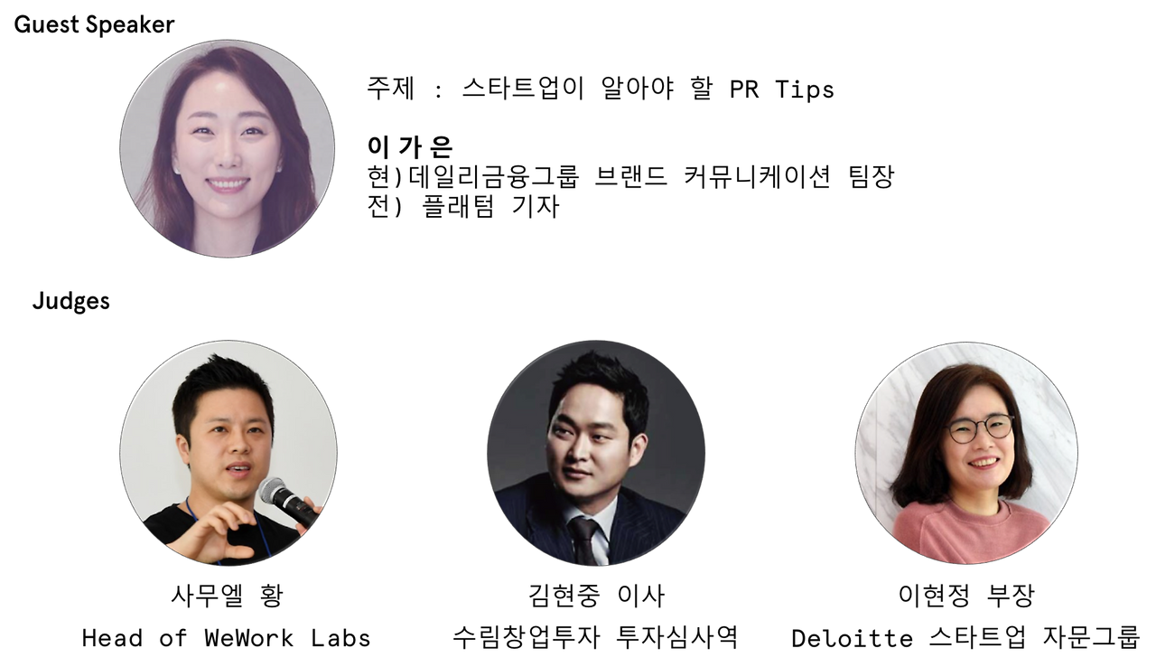 상품 : 우승자에게 WeWork Labs 3개월 무료 입주기회 제공