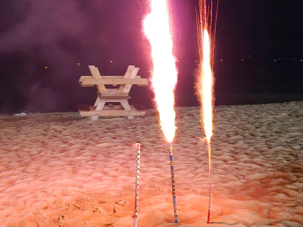 강문해변에서의 해변가 폭죽놀이