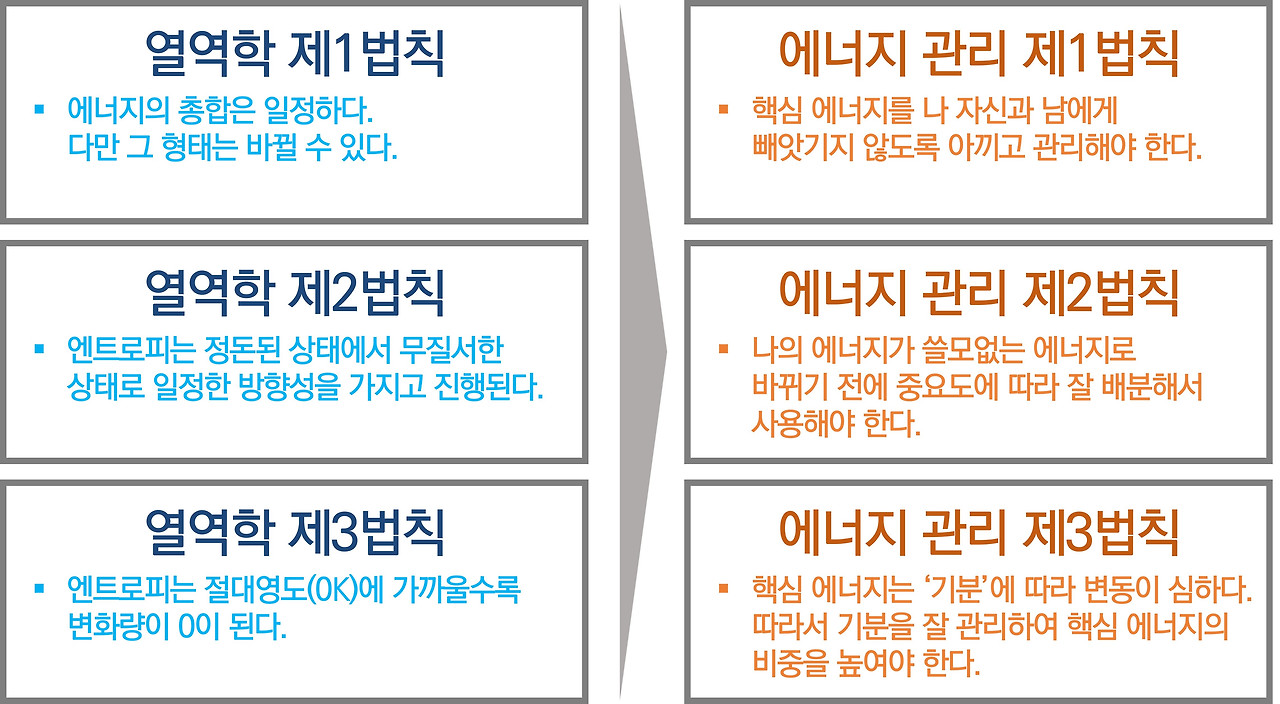 저는 이 글에서 ‘열역학 3법칙’을 기초로 하여 삶의 에너지를 효율적으로 관리할 수 있는 방법에 대해 3가지로 구분하여 설명하였습니다.
