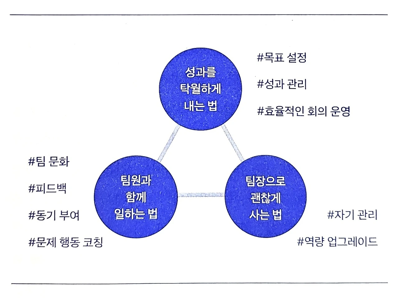 (30p) 팀장의 첫 번째 역할은 팀의 목표를 약속대로 달성하는 것이다. 우리는 이걸 '성과 관리'라고 부른다. 팀장의 두 번째 역할은 팀원들을 데리고 함께 성과를 내는 것이다. 목표를 이루려면 팀원이 잘할 수 있도록 도와야 한다.