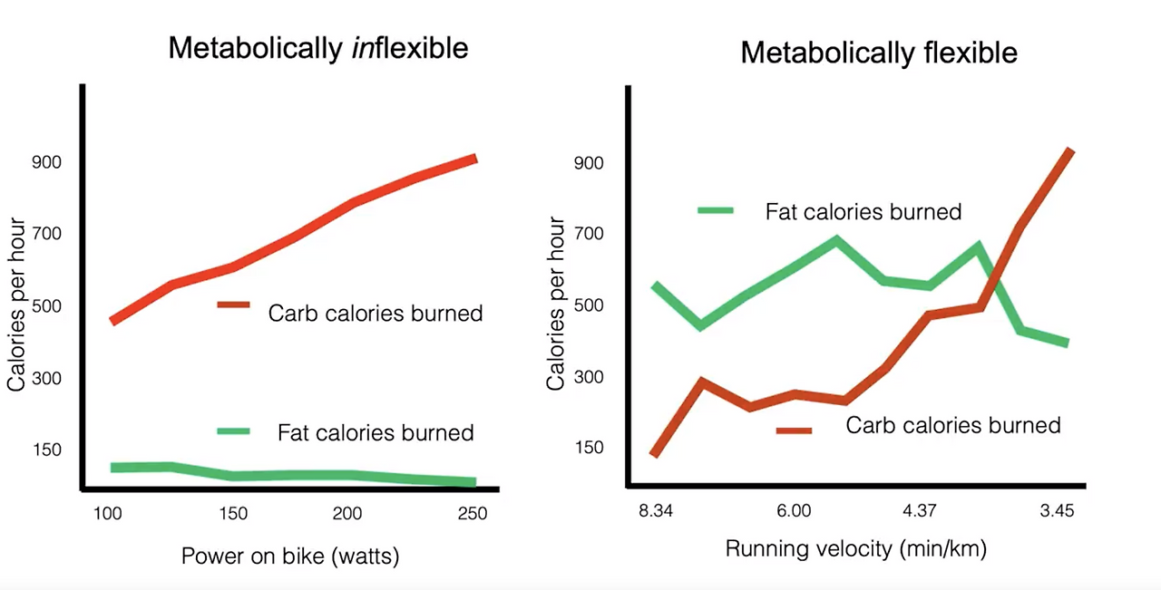 단식이 몸에 적응되면, 몸속에 저장된 당분은 일정한 농도로 유지된다. 체지방이 안정적으로 연소되면서, 신체에 필요한 대부분의 에너지를 공급한다. 높은 강도의 근육 활동에는 글리코겐이 우선적으로 사용된다. 소모된 글리코겐은 몸에서 단백질과 지방을 분해하며 합성해낼 수 있다. 외부에서 섭취한 탄수화물 또한 효과적으로 사용할 수 있다. 이 상태를 지방대사가 완전히 익숙하며, 탄수화물 대사 또한 건강한 상태. 신진대사 발달의 정점이라 할 수 있는 ‘대사적 유연성’이라 부른다.