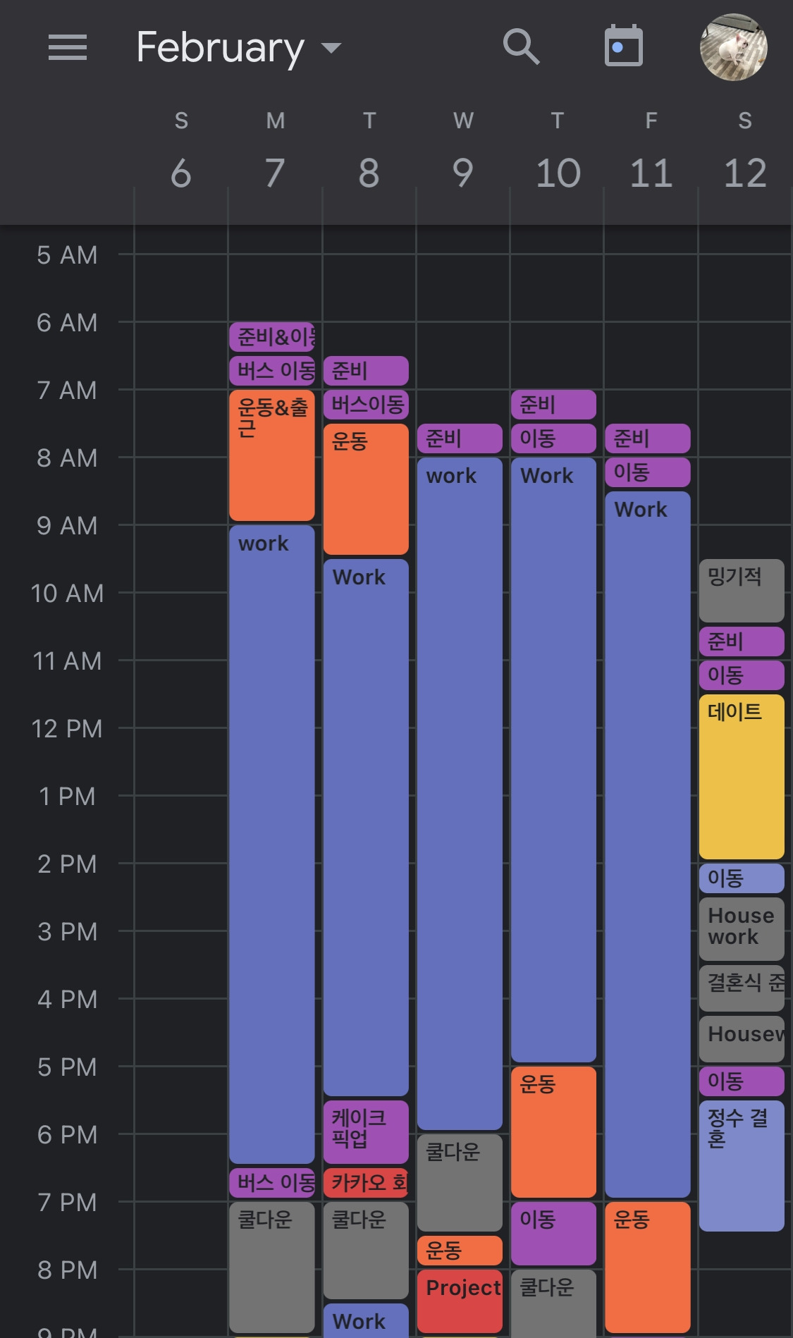 시간 기록을 위해 여러 가지 툴을 조사해보았지만 조금 번거로워도 구글 캘린더가 제일 적합하다고 결론을 내렸다. 새로 학습할 필요가 없어서 추가적인 시간을 투자할 필요가 없었고, 무엇보다도 아직은 모바일 경험이 다른 캘린더에 비해 월등히 좋다고 느꼈다. 한 가지 행동이 끝날 때마다 기록해야 했기 때문에 나에게는 모바일 경험이 가장 중요한 요소였다.