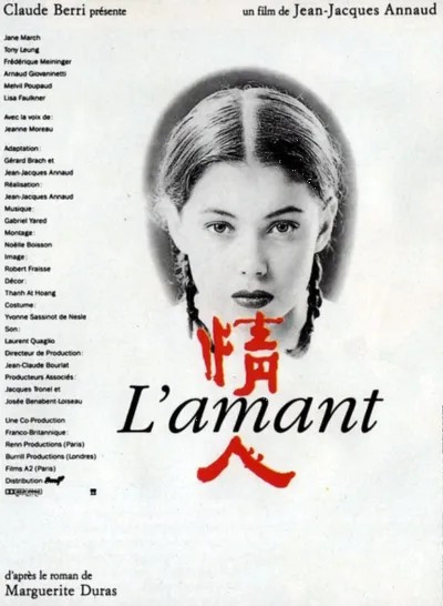 1992년 개봉된 장자크 마치 감독이 마프그리트 뒤라스의 소설을 각색해 만든 영화 연인의 포스터. 양가휘-제인마치 주연