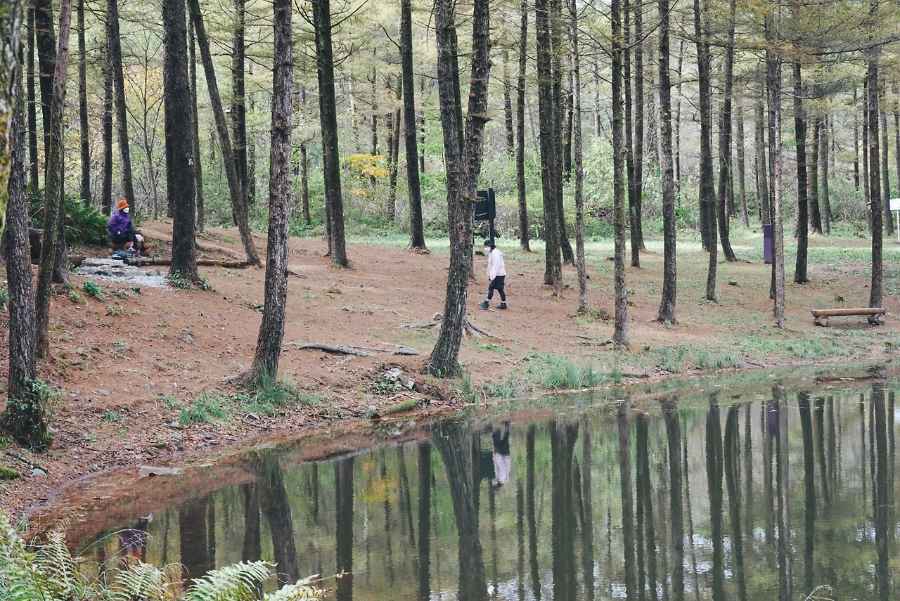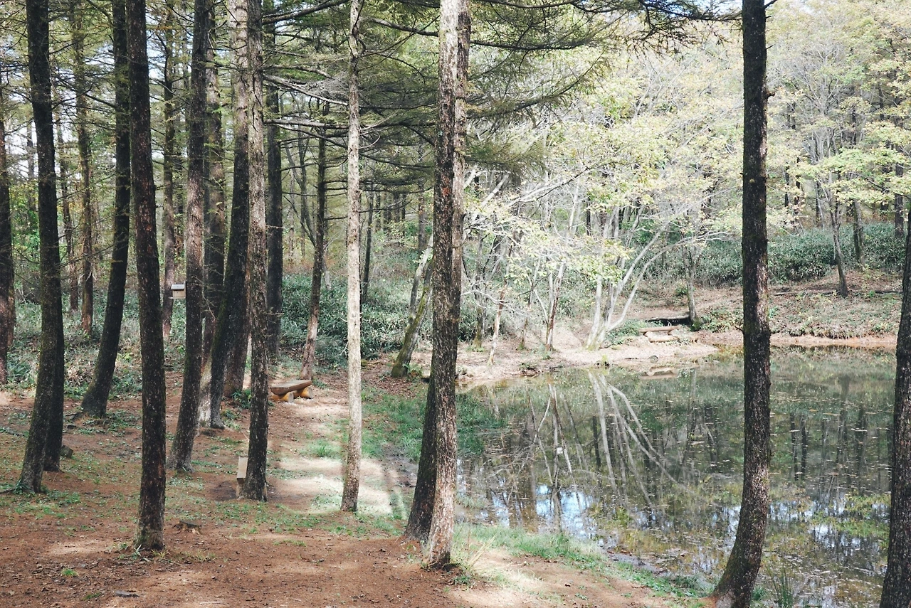 도롱이 연못은 솔직히 사진빨을 아주 잘 받는 곳인 것 같다. 우리가 도롱이 연못에 도착할 때쯤 다시 하늘을 흐려져서 그런 것일 수도 있지만 기대보다 작고 소박하고 평범한 공간이었다. 그러나 사진을 찍었을 때는 연못에 비친 나무의 모습까지 꽤 근사한 장면이 나왔다.