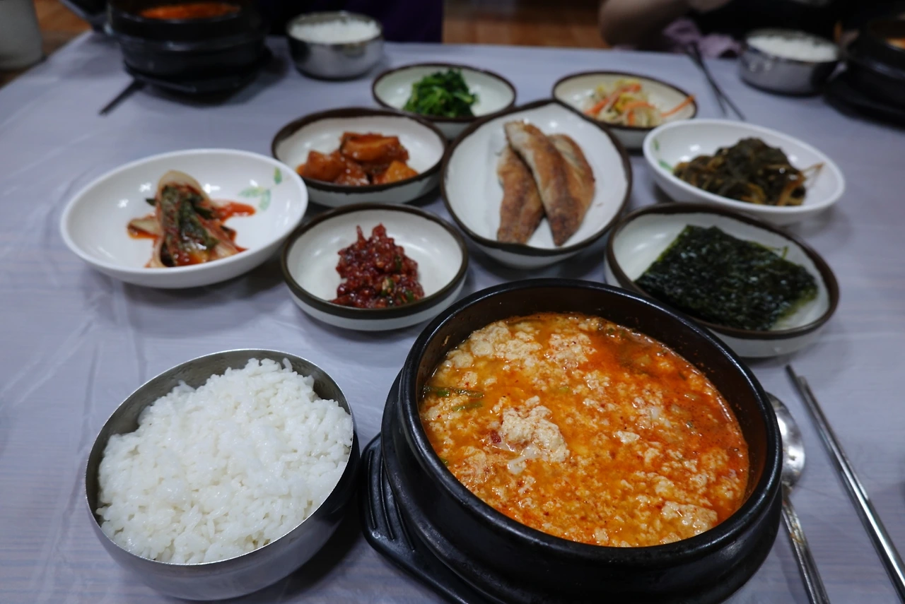 곧 뜨끈뜨끈한 순두부찌개가 나왔다. 반찬으로 고등어구이도 나왔다. 아 트레킹하고 나서 배고플 때 먹어서 그런 것일까 엄청 엄청 맛있었다.