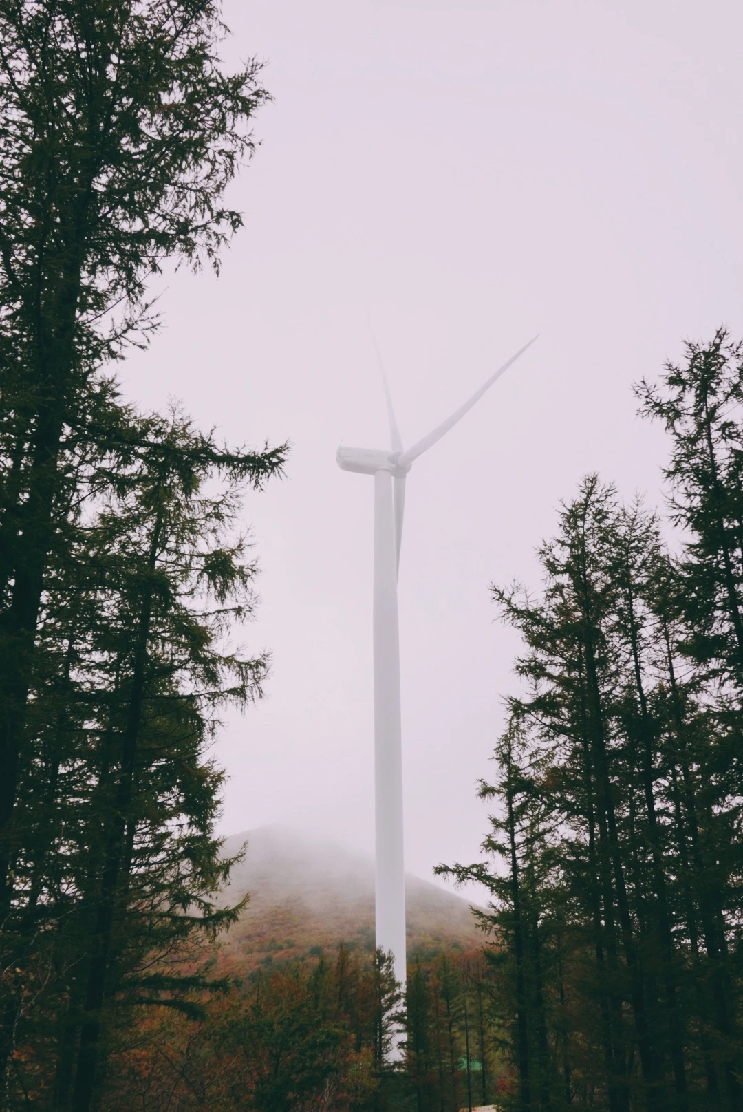 시작점에는 풍력발전기가 군데군데 가까이에 있었다. 풍력발전기를 이렇게 가까이서 보는 것은 처음이었다. 안갯속에서 소음을 내며 돌아가는 풍력발전기를 보니 예전에 톰 크루즈 주연의 영화 <우주전쟁>에 나온 세발 괴물이 생각났다.