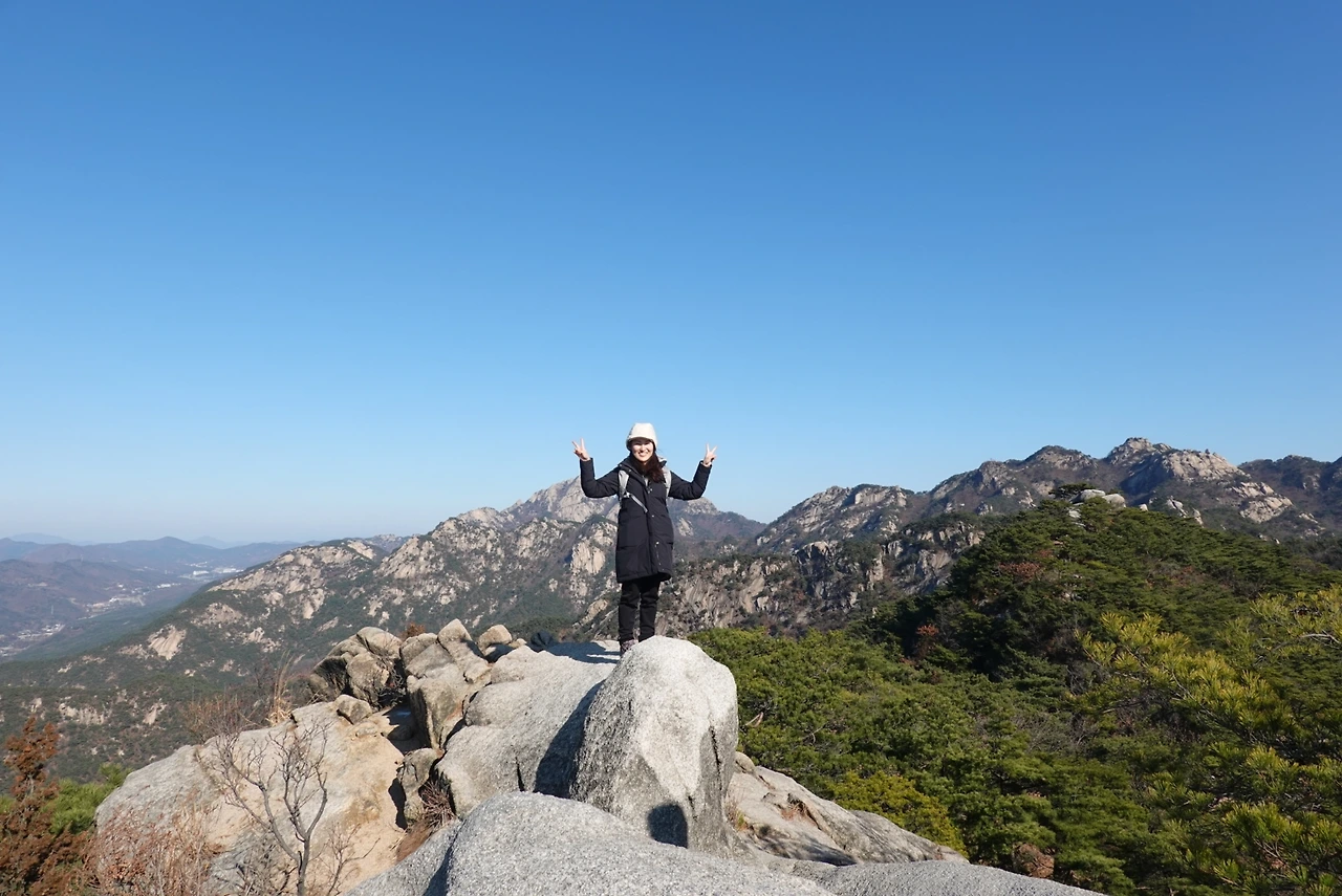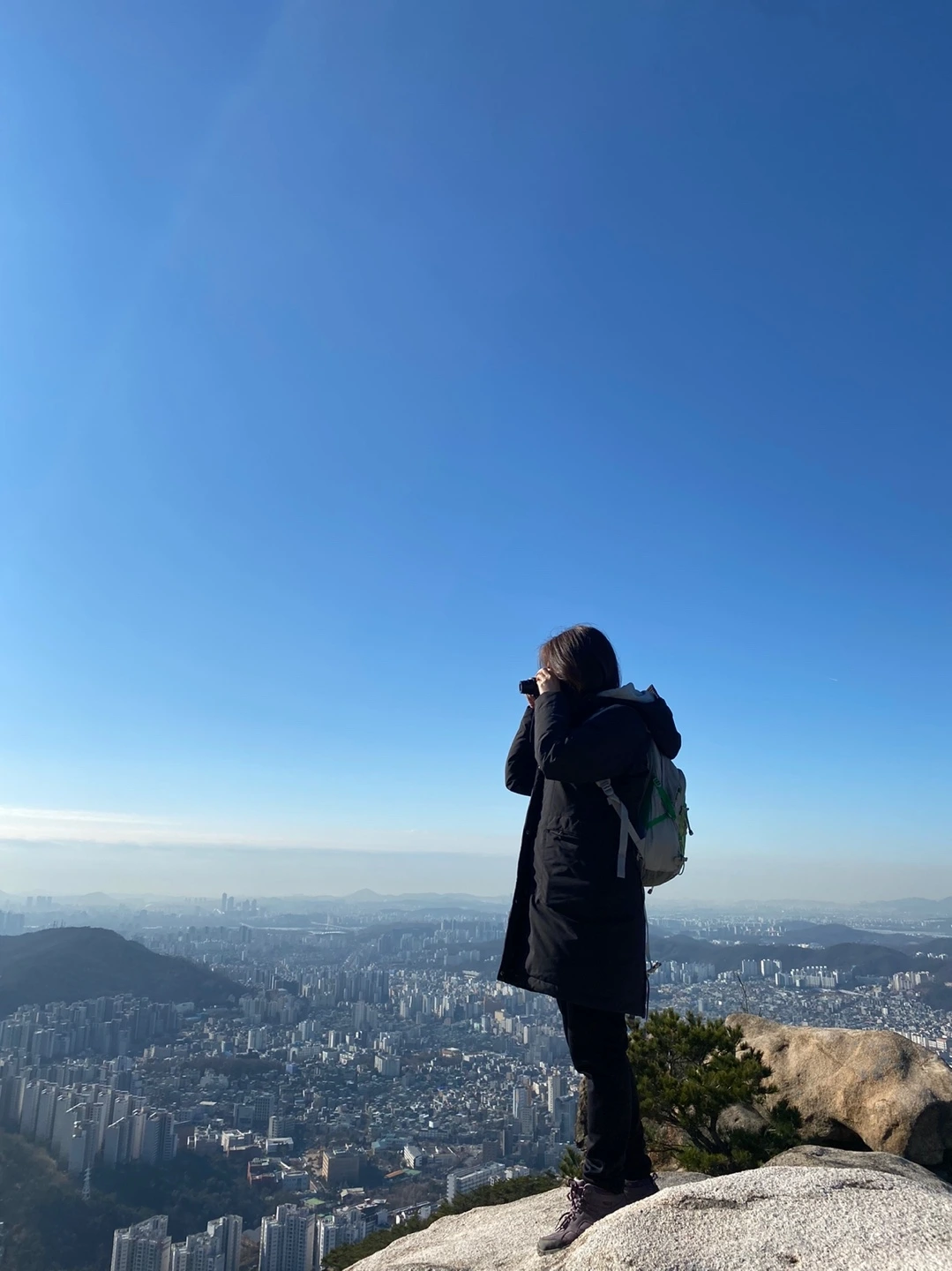 산 위에서 바라보니 서울 시내에 아파트는 물론 산도 참 많았다. 굽이 굽이 흐르는 산 사이로 도시가 형성되어 있는 것이 멋있었다. 마음만 먹으면 인생 사진 몇 장 건질 수도 있을 것 같은 포토 스팟이었다. 그러나 사람도 많고, 바람도 많이 불고, 무엇보다 정상 위 바위가 울퉁불퉁하여 가만히 서있는 것도 괜히 무서웠다. 이곳에 온다면 장갑, 등산화는 필수다. 바위를 타고 올라가야 해서 손도 많이 써야 하고, 운동화는 자칫 미끄러울 수 있기 때문이다.