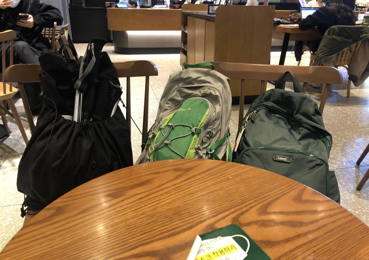3시간 동안 등산을 하면서 끊임없이 수다를 떨고, 또 식당에서 줄을 기다리면서도 한참을 떠들었는데도 뭔가 더 대화할 것이 남아있는 느낌이었다. 그래서 길 건너에 있는 스타벅스에 갔다. 사람이 꽉 차있었는데 마침 한 테이블에서 사람들이 일어나길래 얼른 그 자리에 앉았다. 운이 좋았다!!