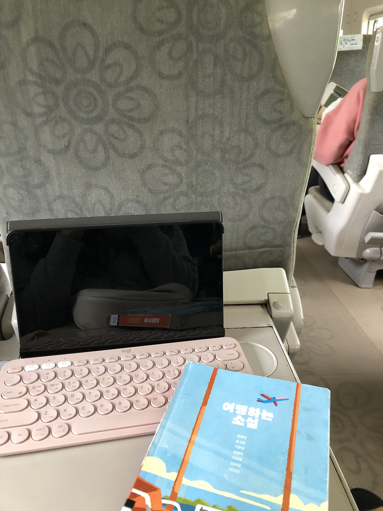 여수까지는 3시간이 걸린다고 한다. 전날 도서관에서 책도 한 권 빌리고, 브런치 써야지 하고 키보드도 준비해서 탔다.