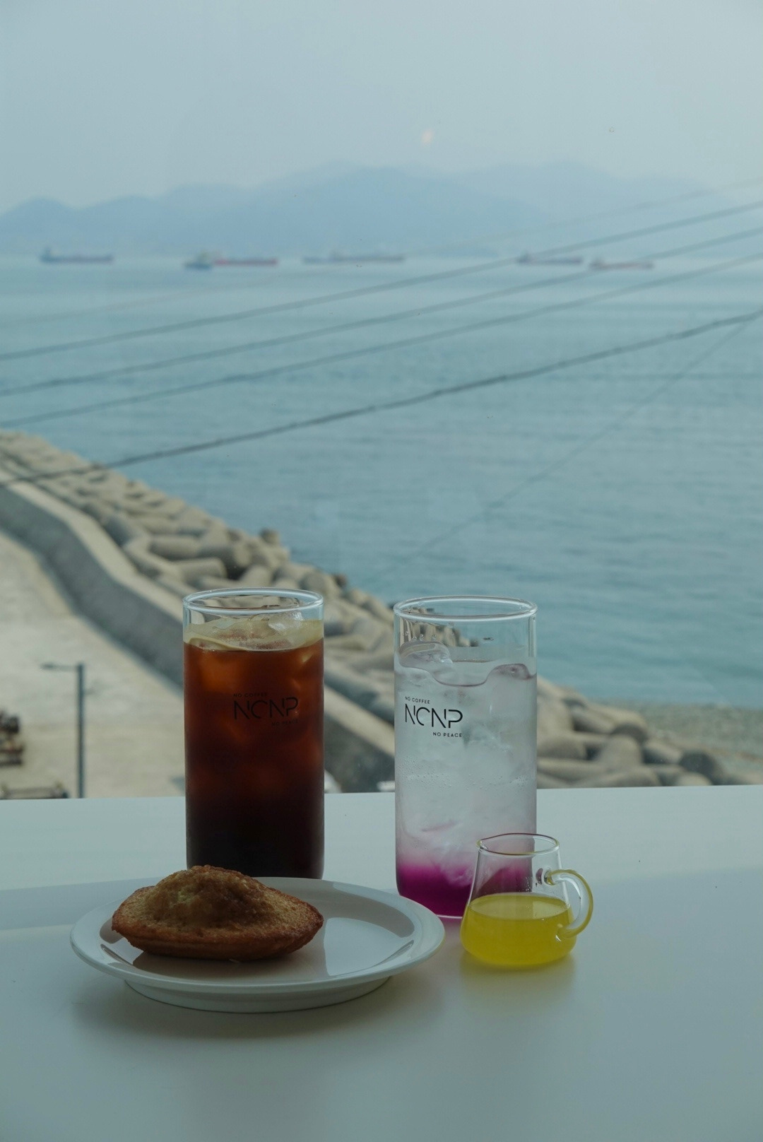 샤인머스킷에이드를 먹어보고 싶었지만 여수에도 왔으니 밤바다 에이드를 시켰다. 보라색 음료인데 레몬즙을 넣으면 그라데이션으로 붉게 물든다. 아마 바다가 노을에 붉어지는 것을 표현한 것이 아닐까 싶었다.