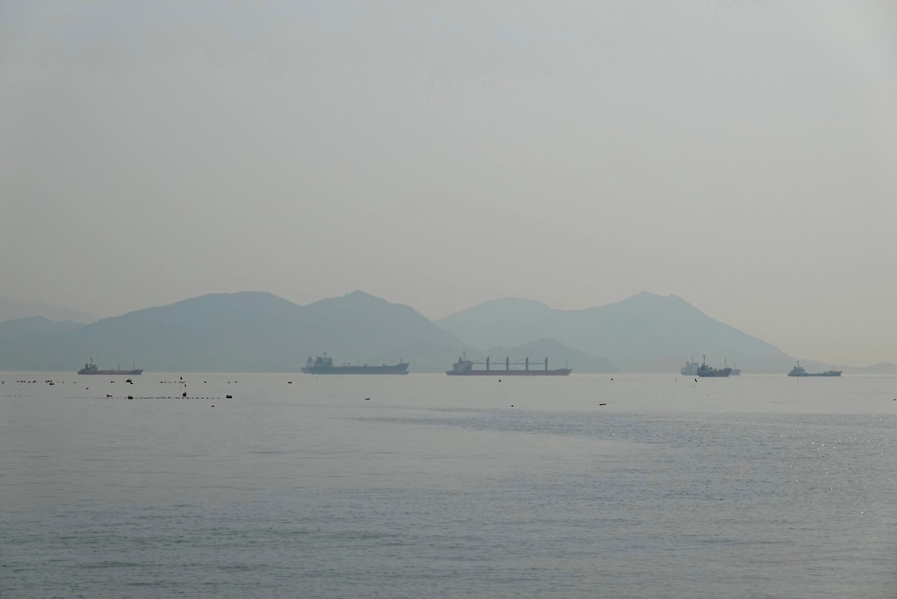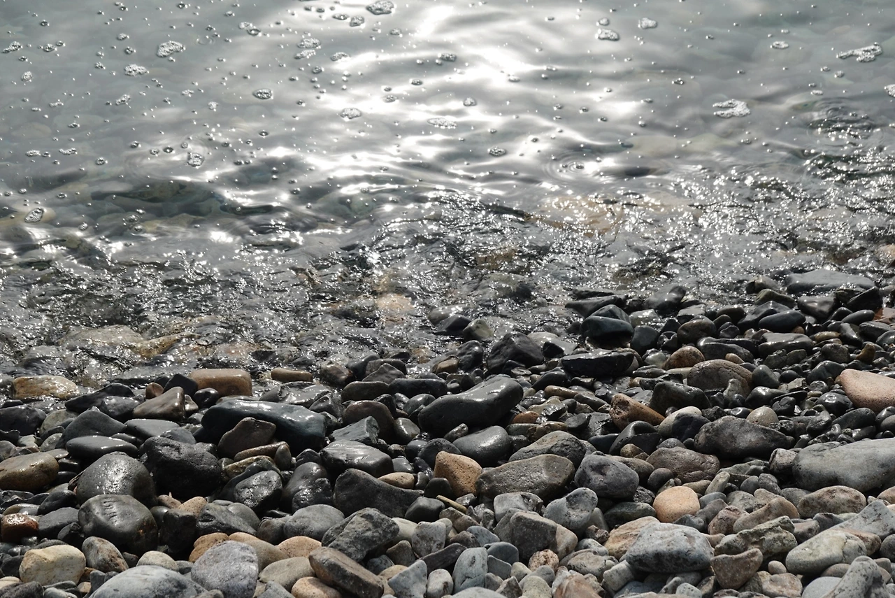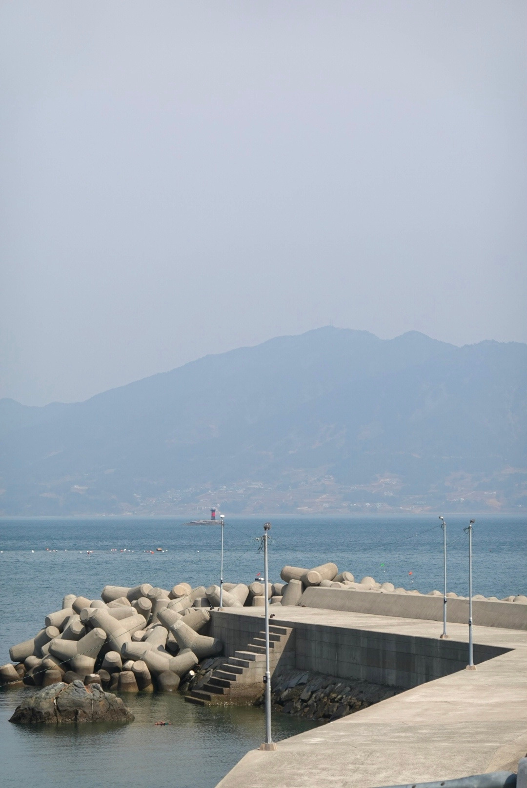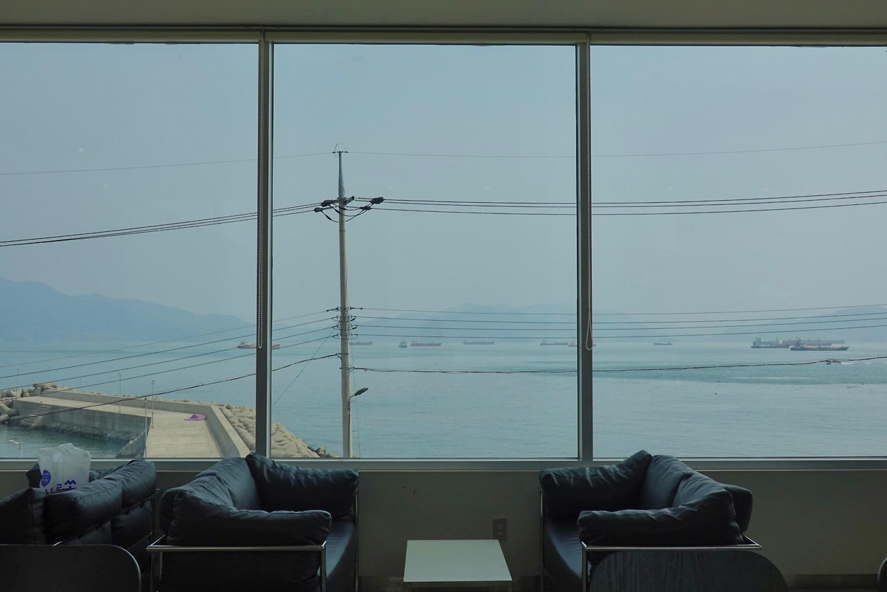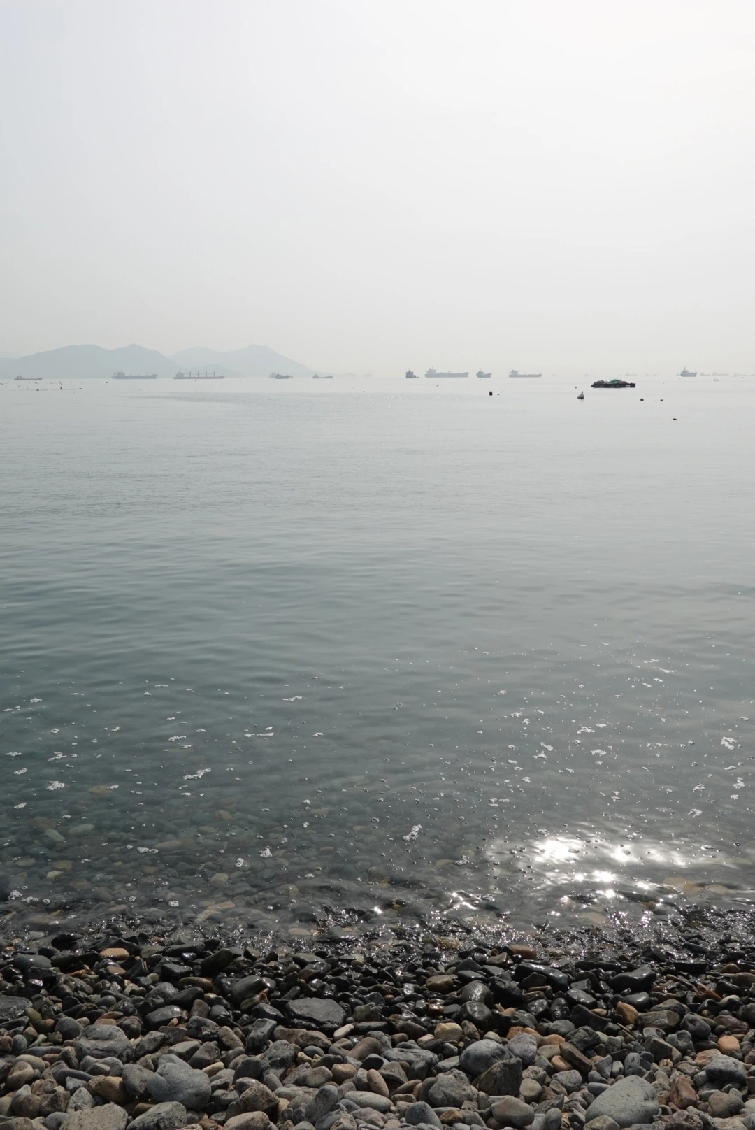몽글몽글한 큰 돌멩이가 가득한 해변이었다. 먼바다로는 광양으로 들어가려는 배가 줄지어 서있었다. 평일 낮이라 사람이 거의 없었다.