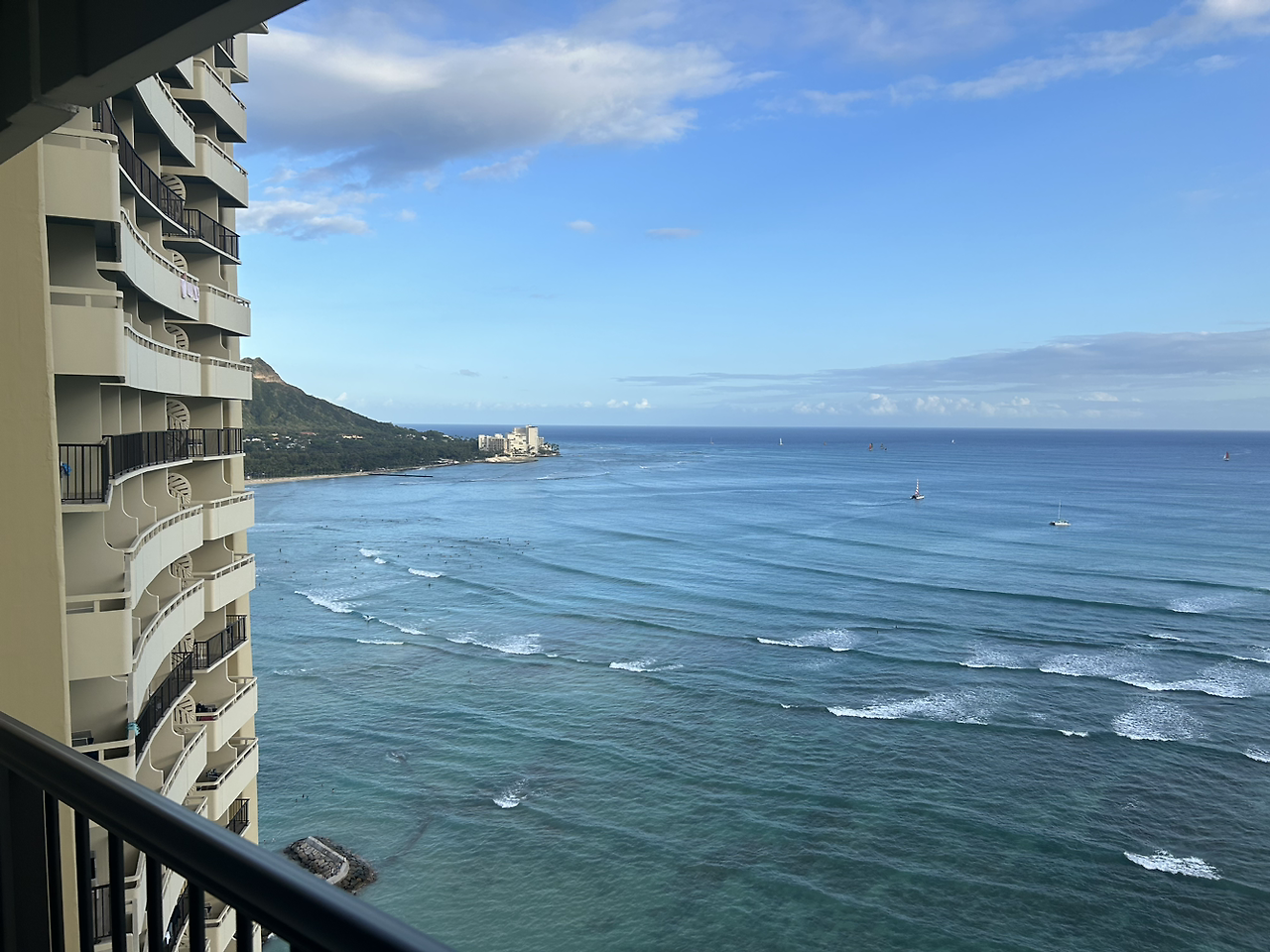 넓은 바다가 한눈에 담기지 않을 정도로 쫙 펼쳐졌다. 마우이가 파란색 푸르고 짙은 바다였다면 와이키키의 바다는 그보다 옅은 하늘색 바다였다. 인스타에 사진을 올리니 사람들이 강릉 아니냐고 놀렸지만 그래도 좋았다.