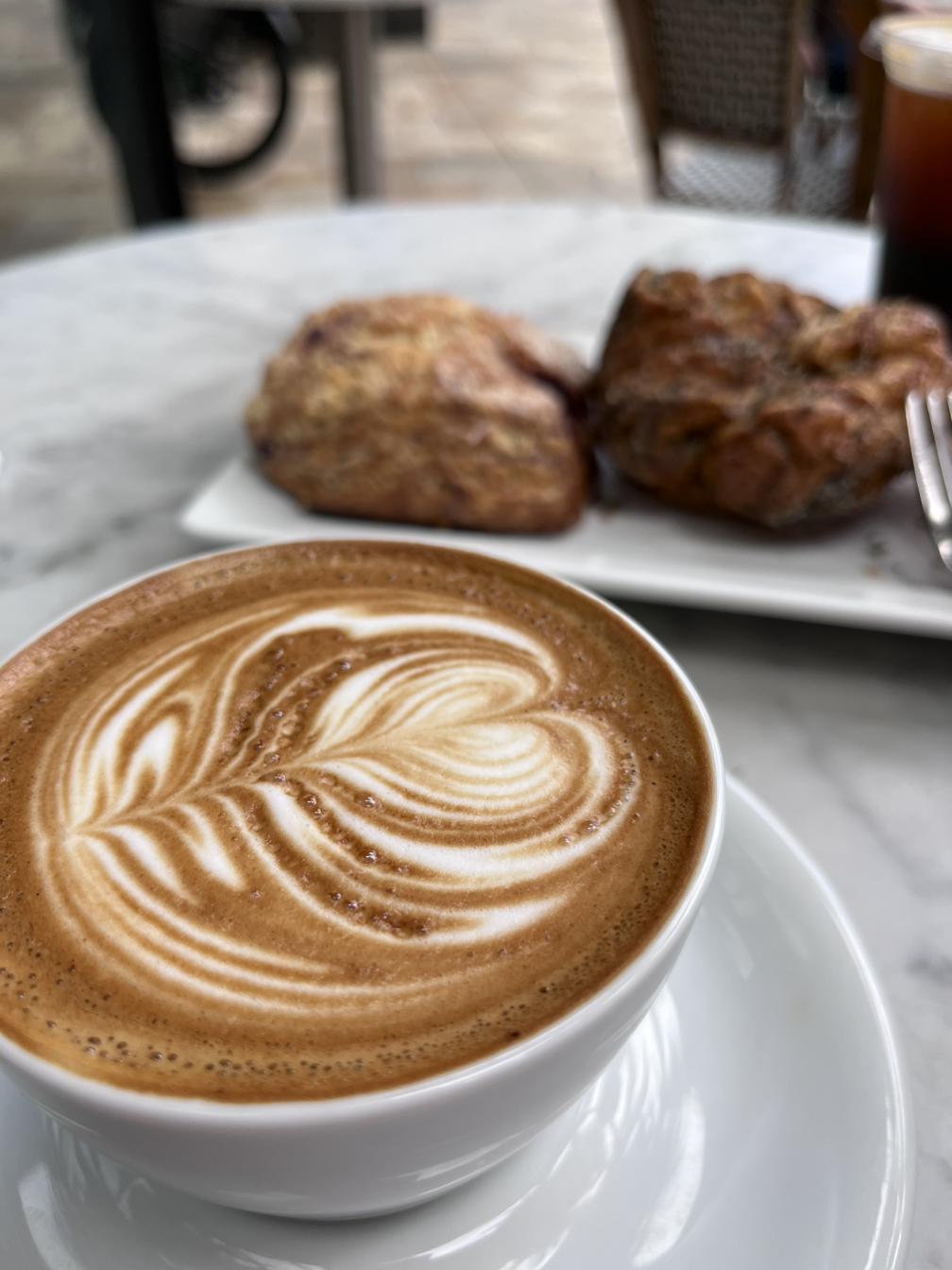 신랑은 아이스아메리카노, 나는 따뜻한 라떼를 시키고 빵을 몇개 시켰다. 여기서 유명하다는 퀸아망을 시켰는데 달고 맛있었다.