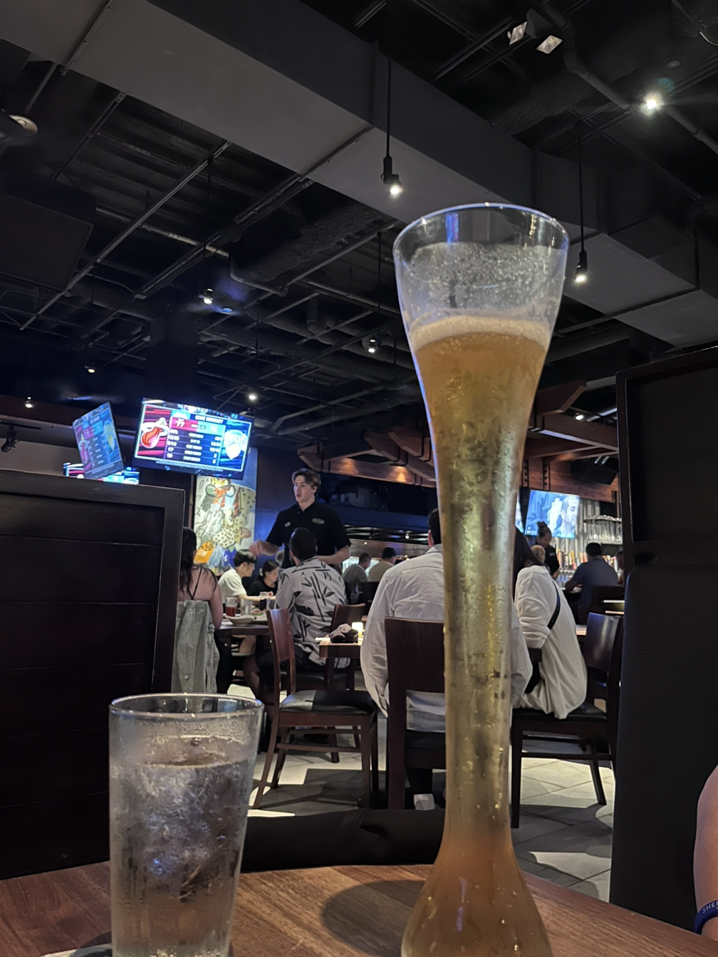 암튼 안내를 받아 자리에 앉아서 맥주를 주문했다. 큰 맥주가 유명하길래 신랑 것 하나랑 나는 다양한 맛의 맥주를 맛볼 수 있는 샘플러를 주문했다. 잉 근데 내가 예상한 맛이랑 샘플러의 맛이 살짝 달라서 내 스타일이 아니네라고 속으로 생각했는데 잠시후 종업원이 오더니 맥주 샘플을 잘못 갖다줬었다며 다시 갖다주셨다. 결국 나는 8잔의 맥주를 마시게 된 것 ㅋㅋㅋ 어쩐지~ 다시 받아본 맥주는 내 취향으로 맛있었다. 맥주 잘 마시지도 못하는데 엄청 먹었다. 이 종업원분은 워낙 친절하셔서 팁도 많이 드리고 나왔다.