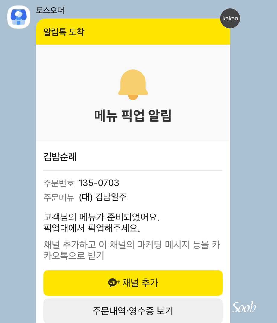 지난번 방문했던 라까예 팝업은 주문하고 착석하면 음식을 받을 수 있었다. 시장 특성상 자리가 협소하기 때문에 회전율이 좋지 않았다. 그런데 이번 팝업은 김밥이라는 음식 특성 덕분인지 결제만 미리 해두면 지정된 시간에 김밥을 수령할 수 있었다. 구매 시, 등록한 번호로 알림톡이 발송되기 때문에 구매자는 음식 수령 전까지 다른 곳에서 자유롭게 시간을 보내다 올 수 있었다.