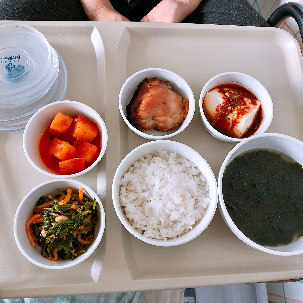 위가 아파 먹지 못하고 남겨둔 병원 저녁밥을 다시 꺼내 먹었다.