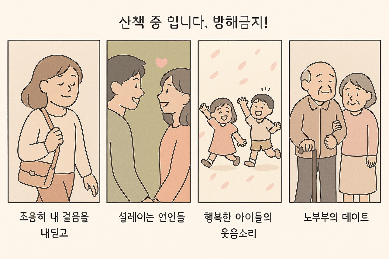 조용한 발걸음이지만, 생각은 시끄럽게 흐른다.