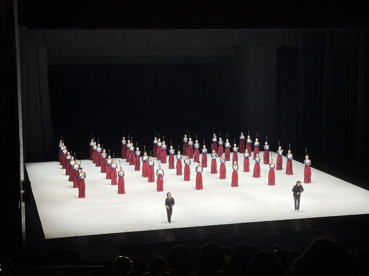일무는 단순히 흰 무대 위에서만 펼쳐지는 공연이 아니다. 무용수들 뒤에 있는 저 검은 공간에서 서서히 나타나는 모습이 진짜 환상적이다.