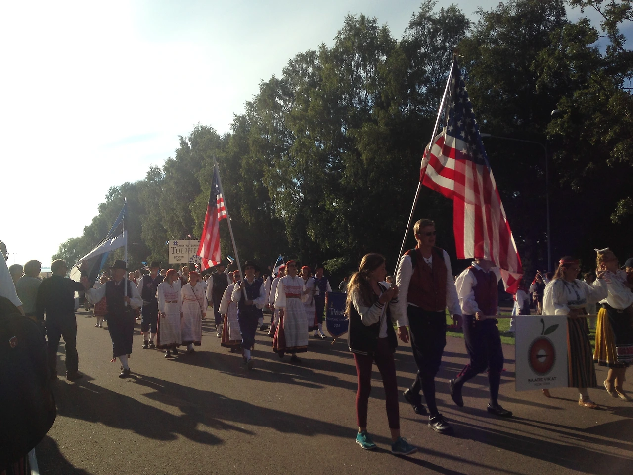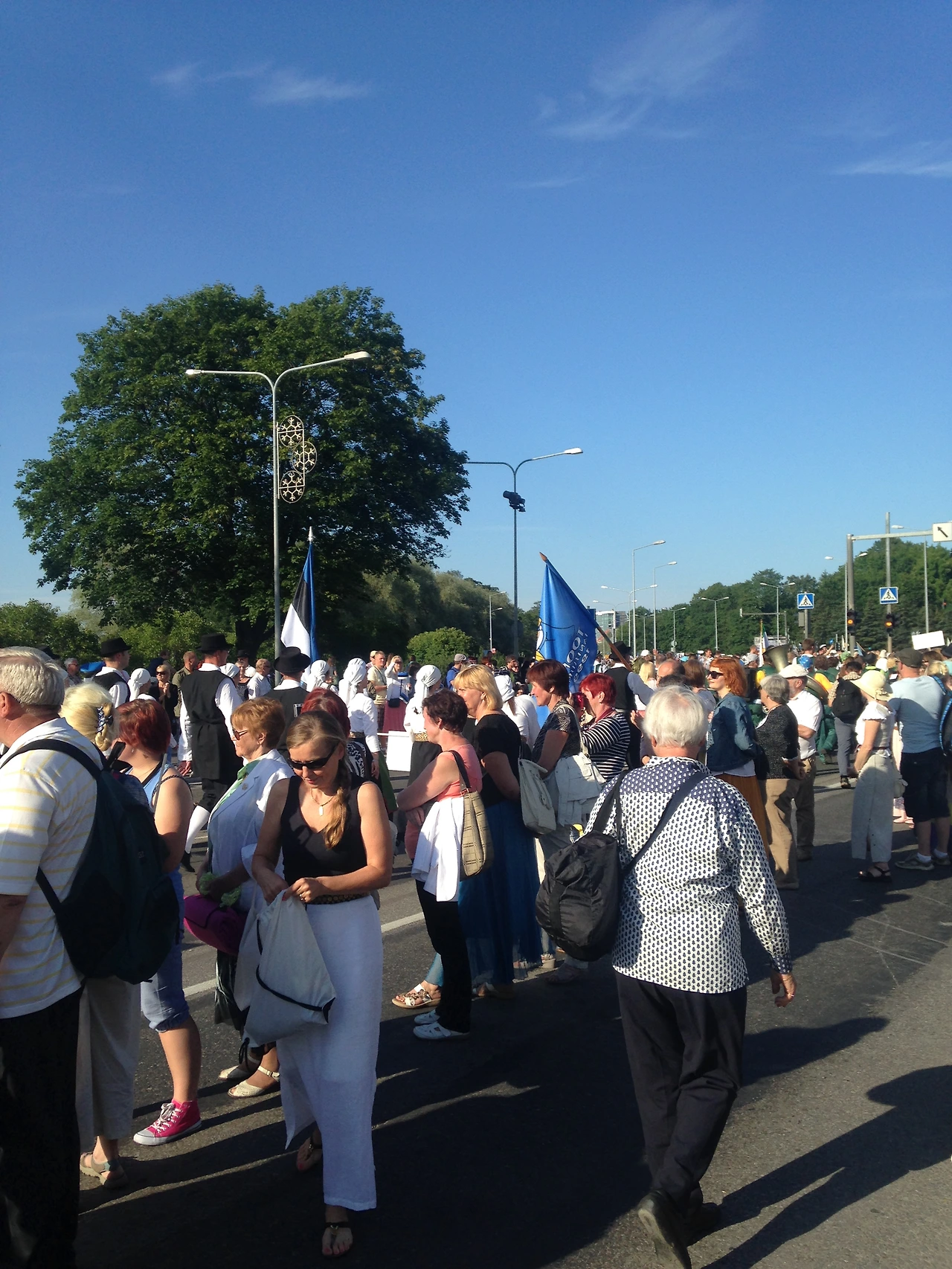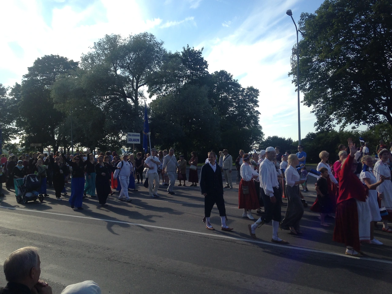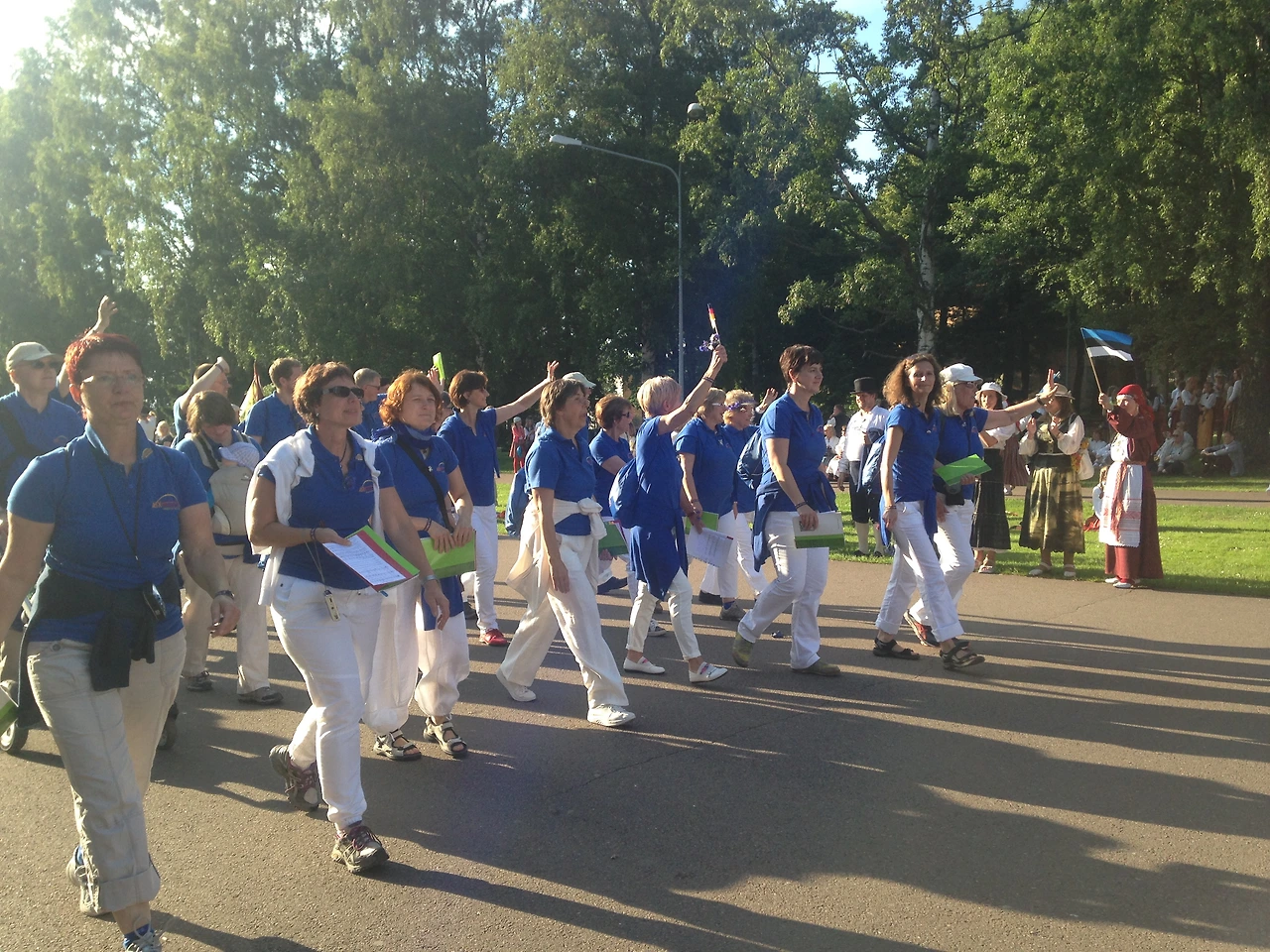 에스토니아 내 전역에서 올라온 이 참가자들은 모두 자기 지방, 도시, 마을의 전통의상을 입고 행진에 참가한다. 가장 최근이었던 2014년 관람객이 아닌 순수 참가인원 수만 해도 33,025명.(에스토니아 전체 인구는 약 1백30만 명이다.) 퍼레이드는 오전부터 시작해서 본 공연이 시작되기 전까지 진행되고, 퍼레이드 옆 잔디밭에서는 바비큐나 맥주, 아이스크림, 솜사탕 등 소소한 음식 부스들이 만들어진다.
