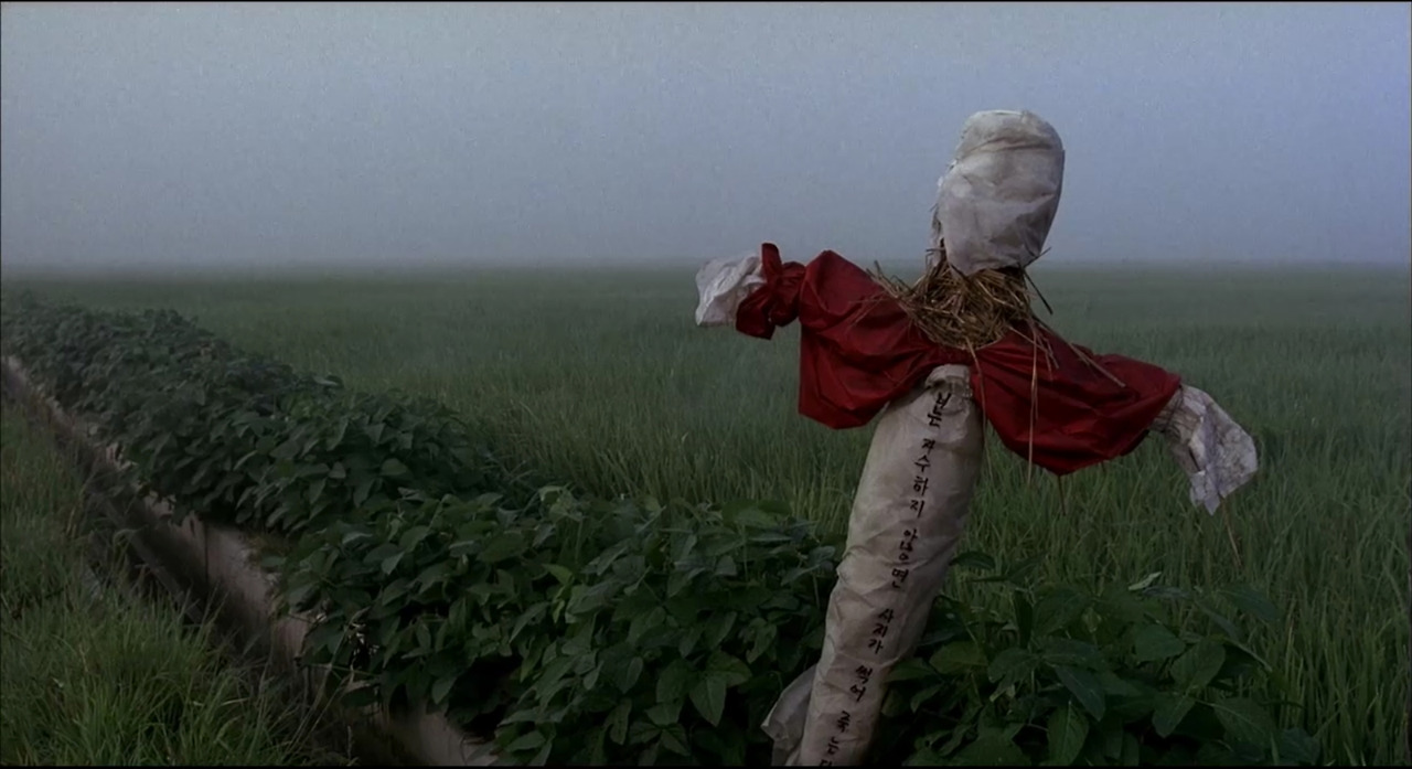 첫 장면, 한 소년은 '풀 숲에 숨어'서 방아깨비를 잡고 있으며, 송강호(경찰)이 오자 그간 잡은 유리병을 숨긴다.