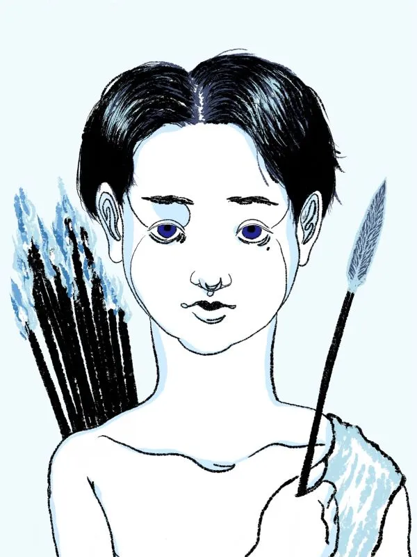 “아마 내 화살 때문일 거야.” 큐피드는 장난기 가득한 표정으로 자신의 등 뒤를 가리켰다. “네 등을 봐.” 나는 황급히 등을 더듬었다. 등 한가운데 박힌 두터운 막대가 느껴졌다. 몸을 틀어 큐피드의 동공에 등을 비춰보았다. 쇠파이프처럼 두터운 푸른색 화살이 박혀 있다. “내게 무슨 짓을 한건 가요? 그나저나 아프진 않네요!” 간신히 화살을 뽑아내고 두 손으로 들쳐보았다. 화살촉은 반쯤 부러졌다. 나머지 반은 여전히 내 몸에 박힌 모양이다. “뽑아내도 소용없어.” 큐피드는 어느새 내 등 뒤로 밀착하고는 상처를 매만졌다. “왜 내게 화살을 쐈나요? 그리고 난 어떻게 된 건가요?” “미안해. 너에게 물어보고 싶은 것이 있어서. 화살을 맞아야 날 볼 수 있거든.”