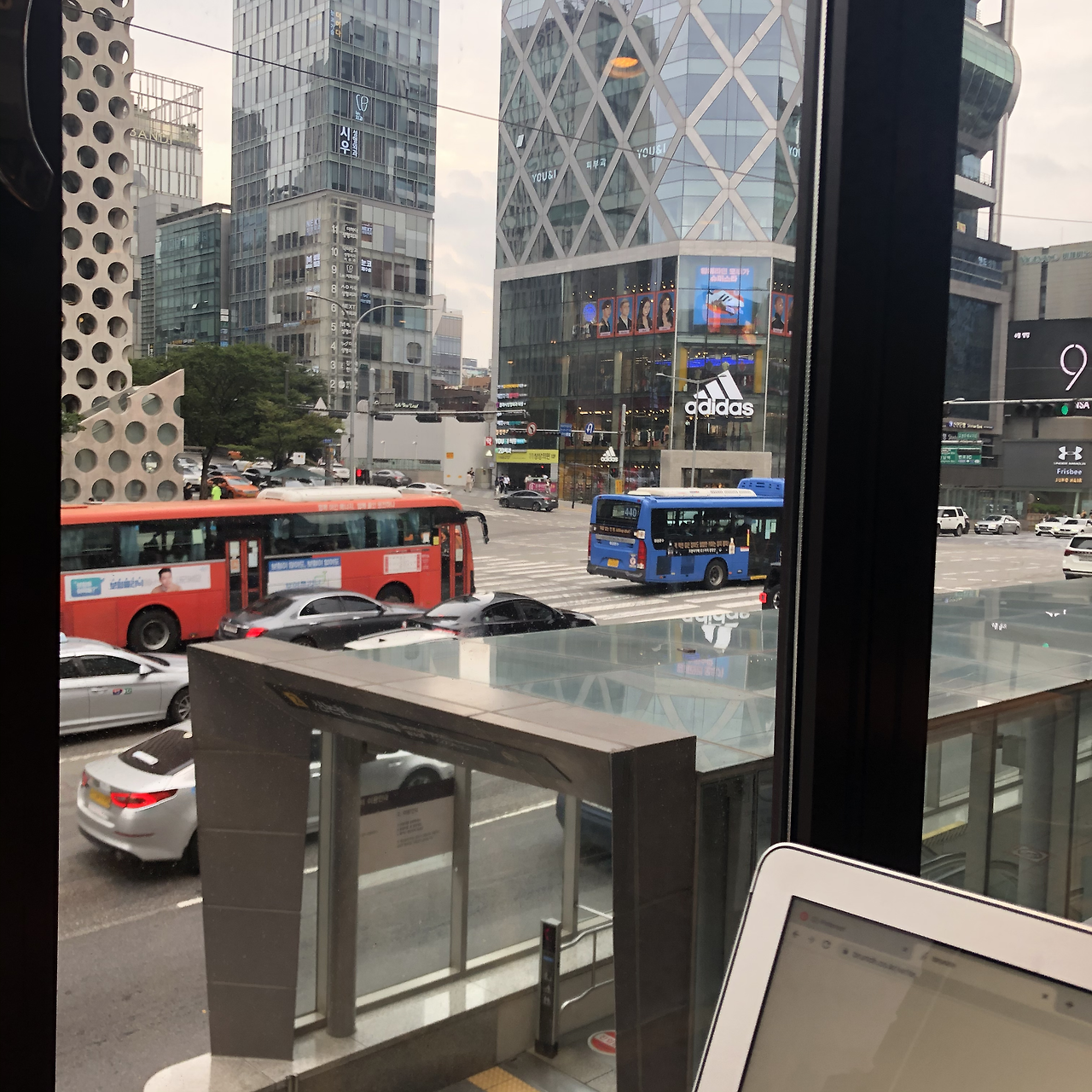 곧 장마가 올 예정이다. 습기 가득한 날씨 때문인지 나는 금세 땀범벅이 되었다. 그럼에도 기분이 좋다. 논현역에서 신논현역까지 걸어가는 동안 부는 바람이 땀을 날려주었다. 몸이 상쾌하다. 일요일, 문 닫은 도시의 풍경은 흐린 하늘 때문인지 낯설어 보인다. 천천히 걸으며 멀리 보이는 사람들을 관찰했다. 그들의 옷차림과 걸음걸이를 보며 그들의 심정과 하루를 상상하며. 그러다 내 머릿속이 텅 비어버렸다. 아무런 걱정도 없고 해야 할 일들도 생각나지 않는다. 지금 나는 건조한 피부로 카페 안에서 에어컨 바람과 함께 아이스커피를 마시며 교차로의 사람들을 바라보는 중이다.