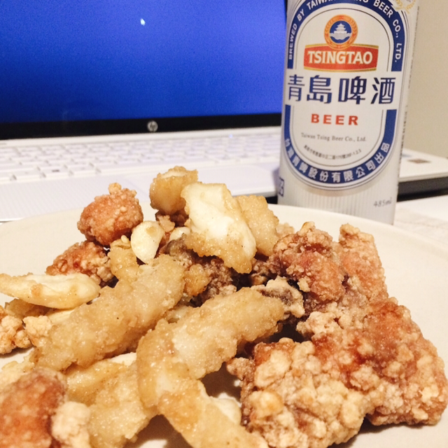 손님이 기증해주신 칭따오 맥주와 함께 옌쑤지. 캔맥주의 경우 작은 한 캔을 다 마시지 못하는지라 저 큰 캔은 내겐 버거웠다.