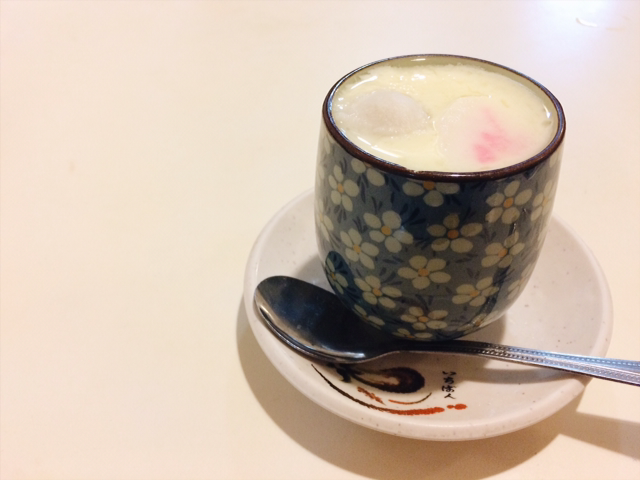 마지막 날 저녁식사를 부모님께서 나를 꽤 큰 일식집에 데려가 주셨다. 우리 집은 외식도 드물었던 집이라 일식이란 걸 먹어본 적이 없었던 것 같다. 코스 요리였는지 처음에 전채로 챠왕무시가 나왔다. 담당 학생이 내게 'Cha-Wan-Mushi'라면서 발음 하나하나를 알려줘서 챠왕무시는 기억한다. 나머지는 전혀 기억이 나지 않는데, 챠왕무시 하나 먹고 배 아파서 아무것도 못 먹었기 때문이다. 4박 5일 일정을 마치고 한국으로 돌아오자 내 배는 점점 악화되었고 한 8일 정도를 밖에 나가지도 않고 아무것도 먹지 않고 집에서 수액 맞으며 죽을 만큼 토하다가(먹은 게 없어 나오는 것도 없다) 결국 3주 동안 입원하게 된다. 4박 5일의 첫 해외 방문 중 유일하게 '식사'로 먹었던 게 챠왕무시.. 라니ㅠㅠ 아무튼 이날 무사시에서 전채로 챠왕무시가 나왔을 때 그때의 기억이 떠올랐는데 지금 이렇게 또 기억의 한 페이지가 확 치고 들어온다.