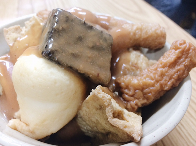 아무튼. 어묵, 튀긴 두부, 무 등등이 들어가 있다. 검정 것은 위에 언급한 블로그에서 본 것 같지만 그냥 모른 채 먹기로 했다. 알고 싶지 않은 것으로 기억한다.
