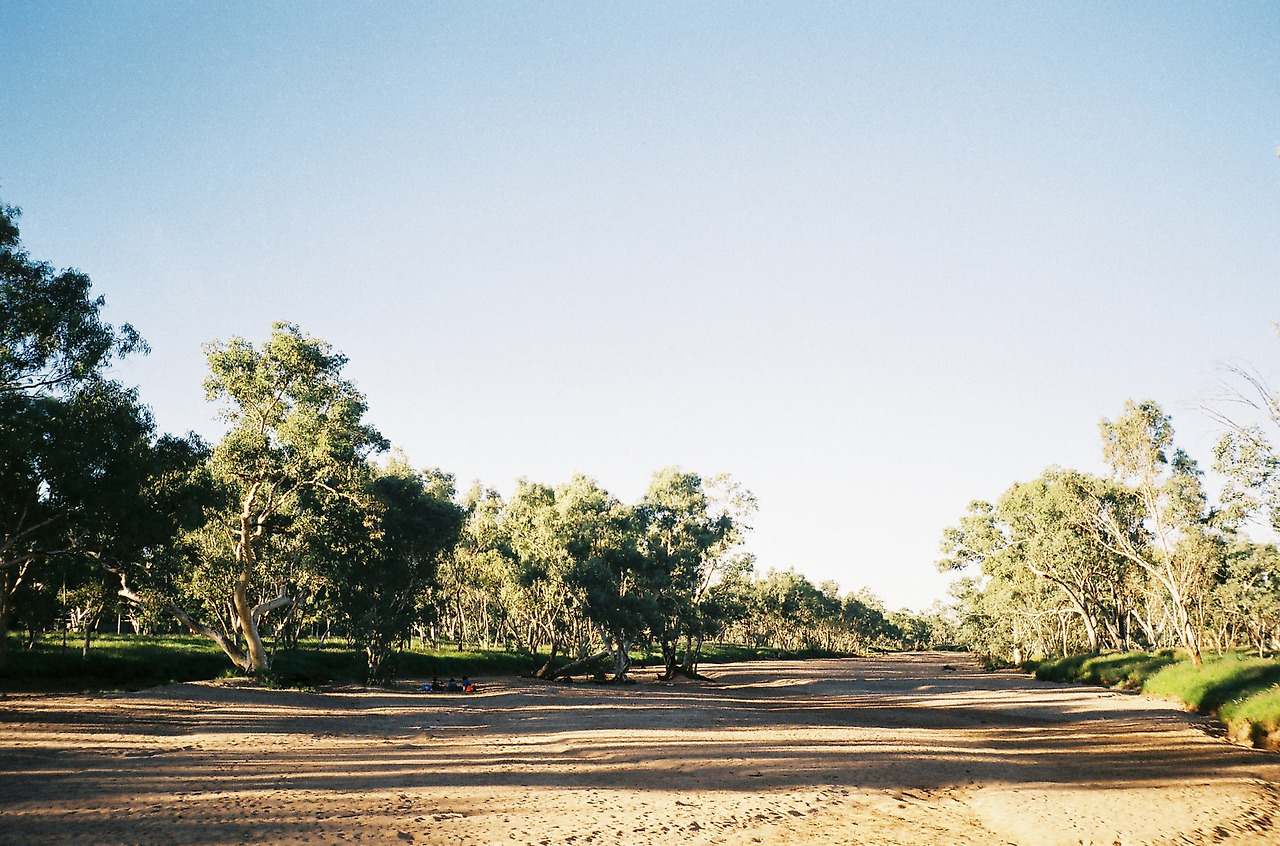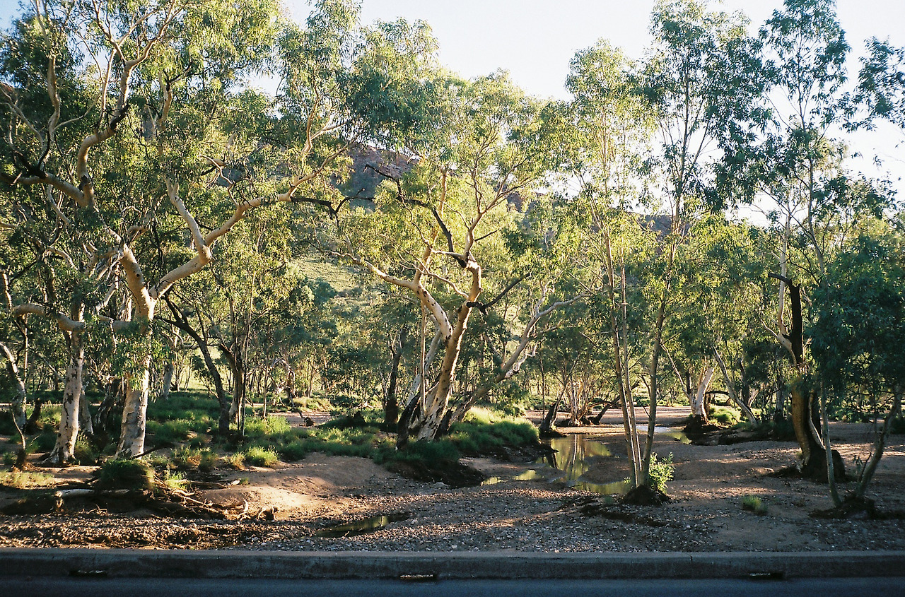 여러 숙박 시설을 돌아 내가 머무는 백패커스에 도착했다. 분명히 마지막 날 머물 예정인 호텔과 오늘 머무는 백패커스 사이엔 Todd River라는 강이 흐르는 걸로 알고 있는데, 강은 보이지 않았다. 강의 물은 증발하여 없고, 조금 지대가 낮은 걸로 아 여기가 강이구나ㅡ라고 짐작은 할 수 있었다. 지도상으로는 상당히 큰 강으로 보였는데 직접 보니 걸어다니 수도 있을 정도의 강이었다. 멜버른으로 돌아온 후에 인터넷에서 검색을 통해 비가 많이 내리면 아주 종종, 몇 년에 한 번씩은 강이 '흐르기도' 한다는 사실을 알았다. 3일간의 투어가 끝나고 돌아오는 길에 시내의 반대쪽 방향으로 물이 조금 고여 있는 것을 발견했다.