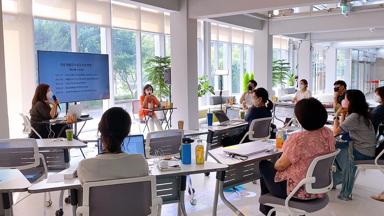 재단에서 20년간 축제, 대관, 마을사업, 교육 등 다양한 업무를 진행했는데, 그중 제 업무의 핵심은 ‘교육’이라고 생각해요. 생애주기별 시민 대상 교육, 매개자 교육, 예술인 대상 교육 등 많은 시간이 ‘교육’과 연결돼있더라고요. 2020년 문화예술교육 전용공간인 성남꿈꾸는예술터가 만들어지고, 작년 10월까지 성남문화예술교육센터에서 다양한 주체별 협의구조를 만들고, 생애주기별 맞춤형 교육을 기획·운영했어요. 성남문화예술교육센터는 기능 중심의 예술교육보다는 지역 내 문화예술교육 거점의 역할을 하면서 유아, 학교, 노인 등 세대 전문가, 예술교육가와 함께 협의 구조를 만들고 학습자 맞춤형 교육을 기획하고, 실험하고, 확산해요.