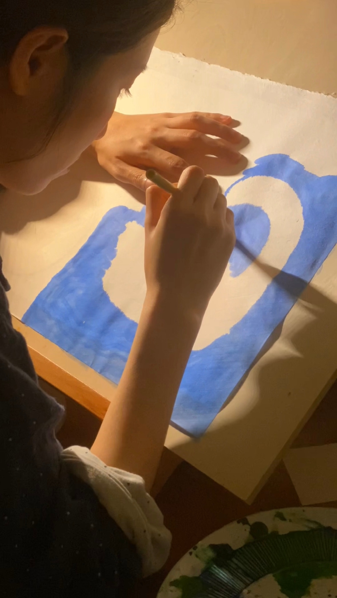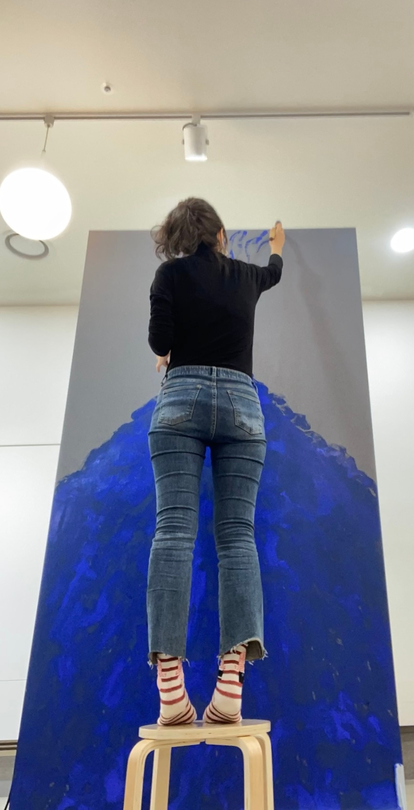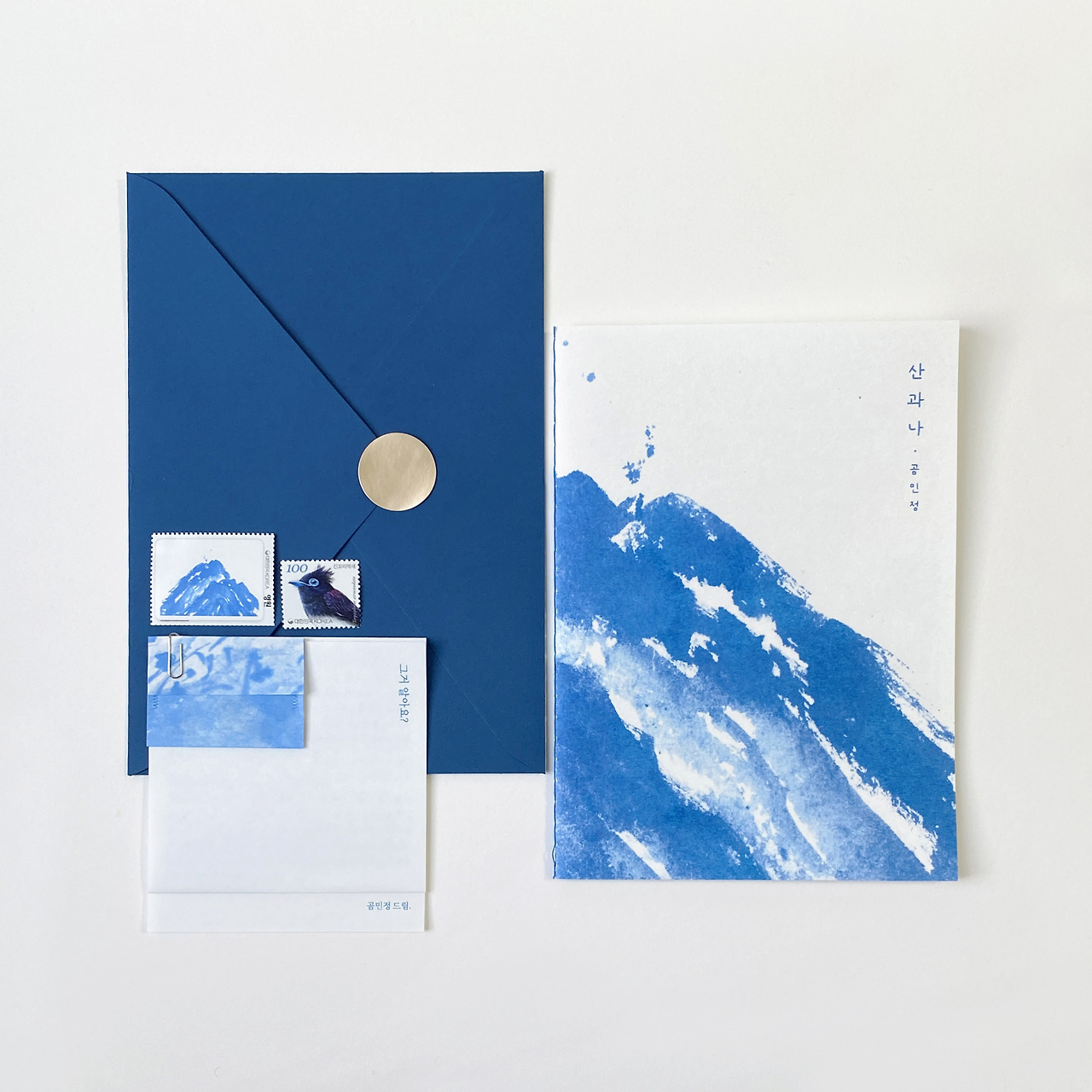 생각해 보면 제 작업은 모두 ‘나의 감정을 들여다보는 일’이었어요. 조금 느린 편이라, 그때그때 스스로의 감정을 충분히 알아차리지 못할 때가 많습니다. 작업을 통해, 조금 늦지만 나의 감정을 깨닫는 것만으로도 엉켜있던 감정들이 참 많이 풀린다는 것을 배웠습니다. 그래서 스스로를 위해, 뒤늦게 발견한 나의 감정들을 한지 위에 그려내고 있습니다. 맨 처음 했던 작업은 그림 시집 <산과 나>였습니다. 회사를 그만두고 본격적으로 그림을 그리기 시작했을 때, 자꾸자꾸 푸른색 물감만 줄어들고 있다는 사실을 발견했습니다.