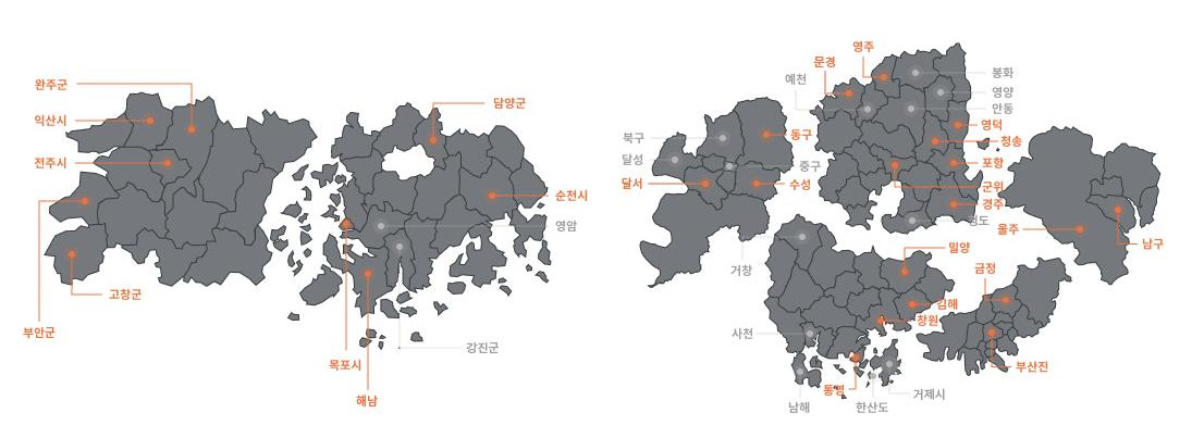 호남. 영남권 기초문화재단, 출처 : 전국지역문화재단연합회 홈페이지