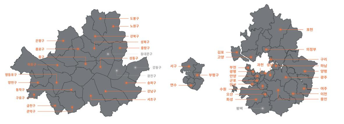 서울. 인천. 경기권 기초문화재단, 출처: 전국지역문화재단연합회 홈페이지