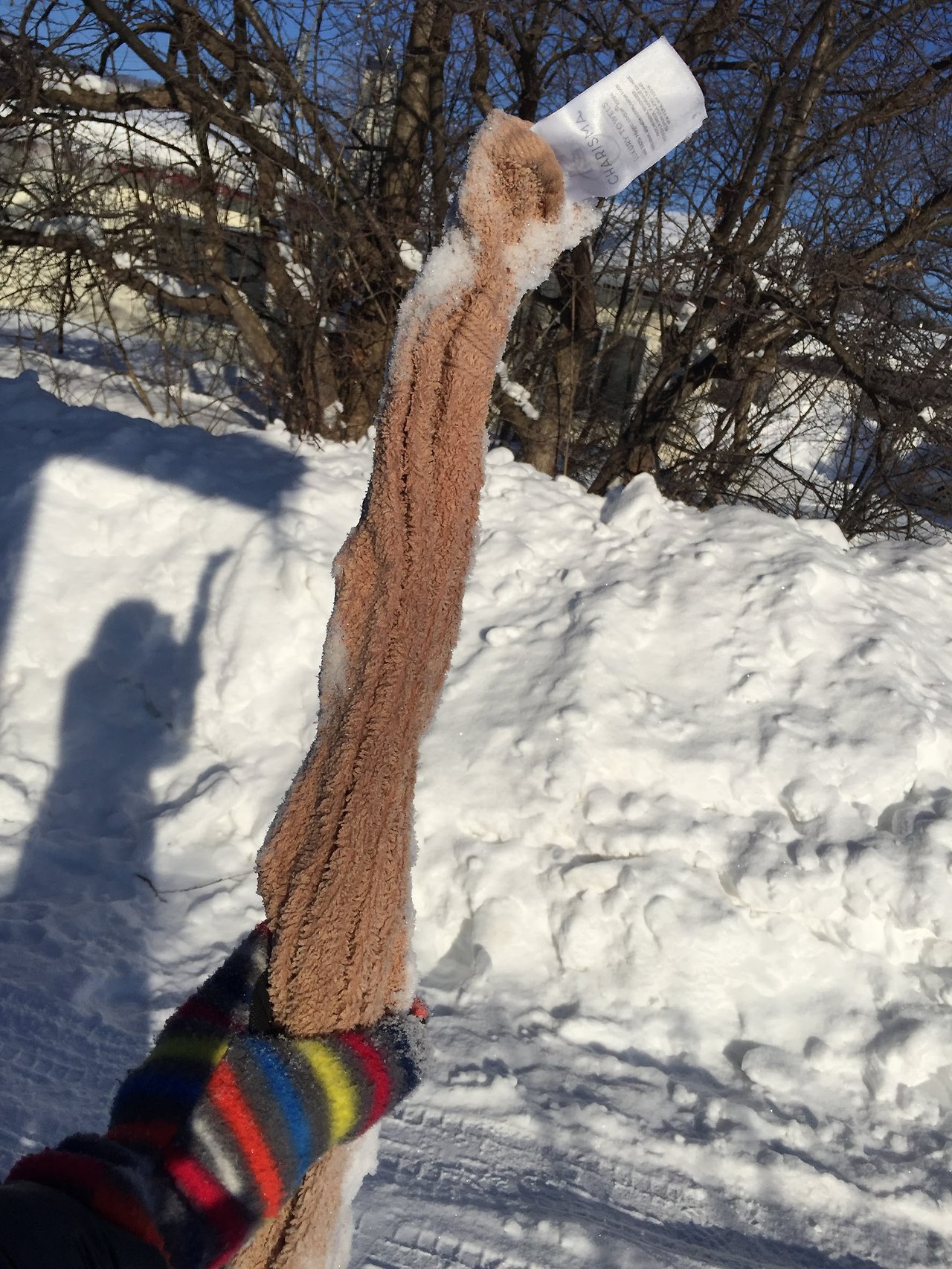 홋카이도에서 영하 15도 이하로 내려가면 하는 놀이, 바로 물에 적신 수건 돌려 수건막대를 만들 절호의 찬스이기 때문이다. 이제 겨울도 얼마 안남았는데 이 기회를 놓칠 순 없지.