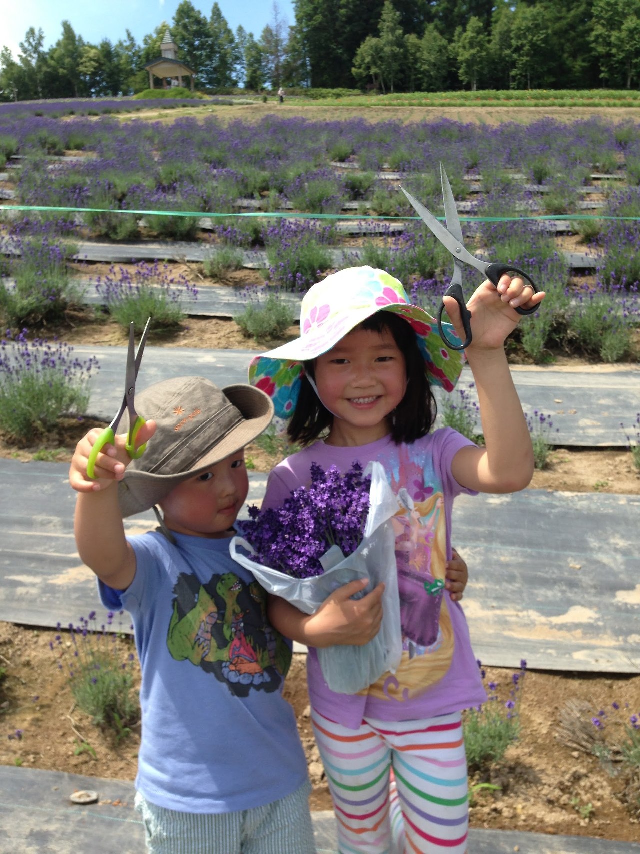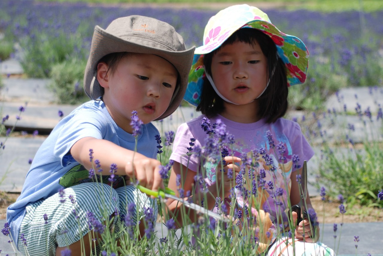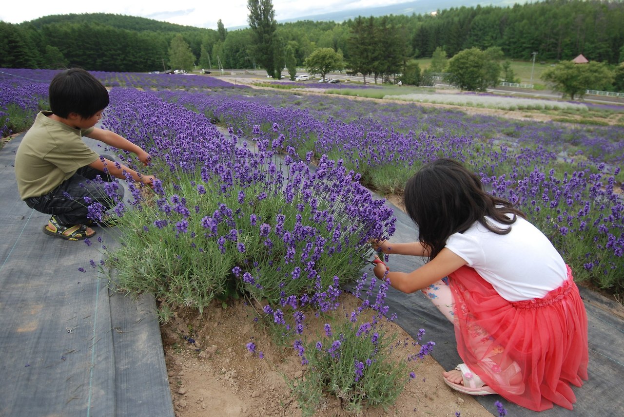 이 라벤다 밭의 매력에 흠뻑 빠진 우리가족은 단체관광객이 오지 않는 좀 한적한 농장을 찾기 시작했고 결국 ‘사사키농장(彩香の里 佐々木ファーム)'이라는 좀 작은 규모의 라벤다 농장을 발견했다. 이 농장에서는 돈을 내고 라벤다 꽃을 꺾는 체험을 할 수 있다. 체험 좋아하는 아이들에게 꽃 ‘구경’은 시큰둥해도 꽃 ‘꺾기’는 신나는 놀이라는 것을 알게 된 후, 매년 여름이면 어김없이 사사키농장을 찾게 되었다. 라벤다를 여유있게 즐기기 위한 엄마의 고도의 책략이랄까. 아이들은 꽃 꺾느라 바쁘고 나는 꽃 구경하느라 행복하니 우리가족에게는 맞춤체험이 아닐 수 없다.